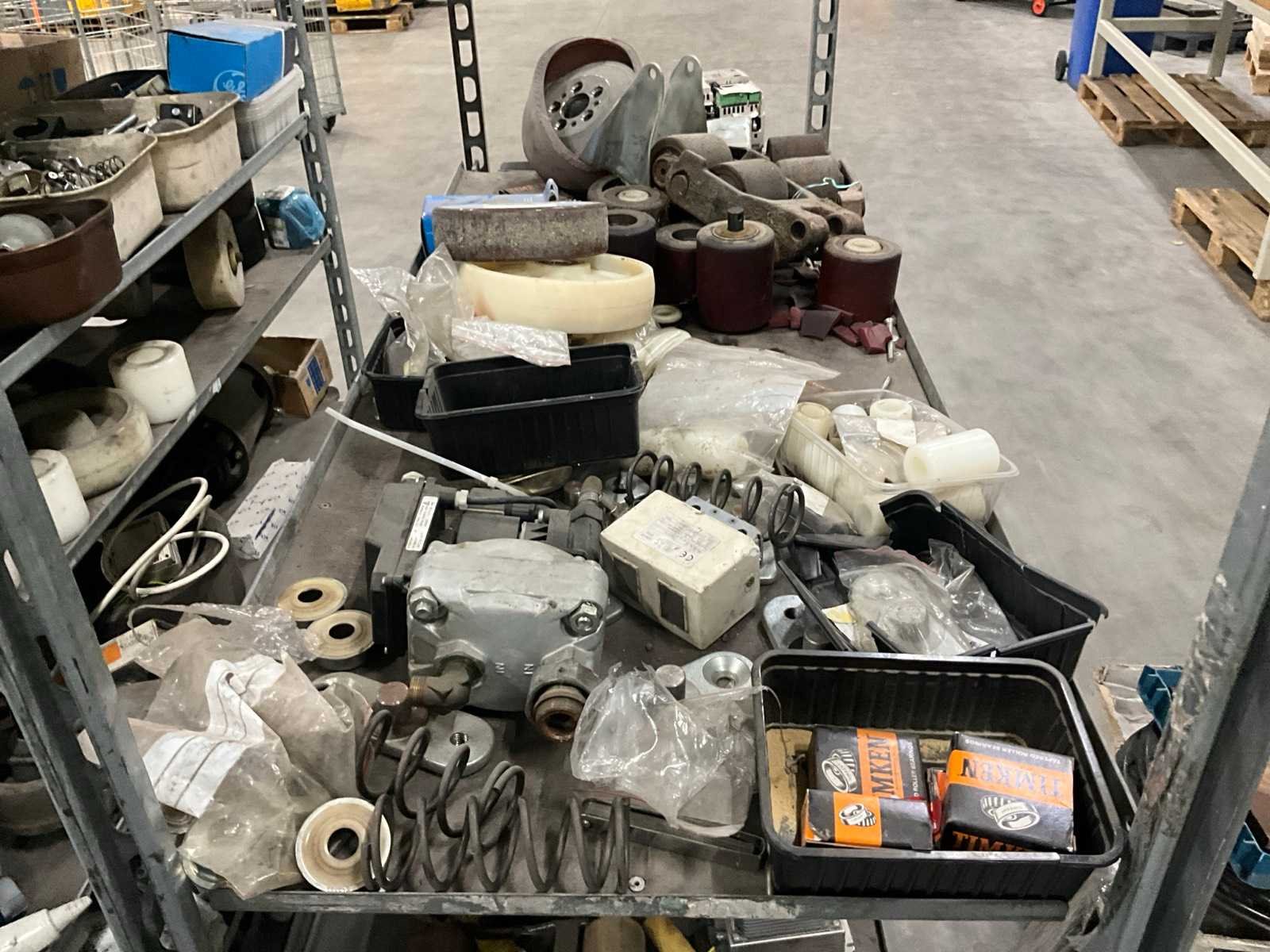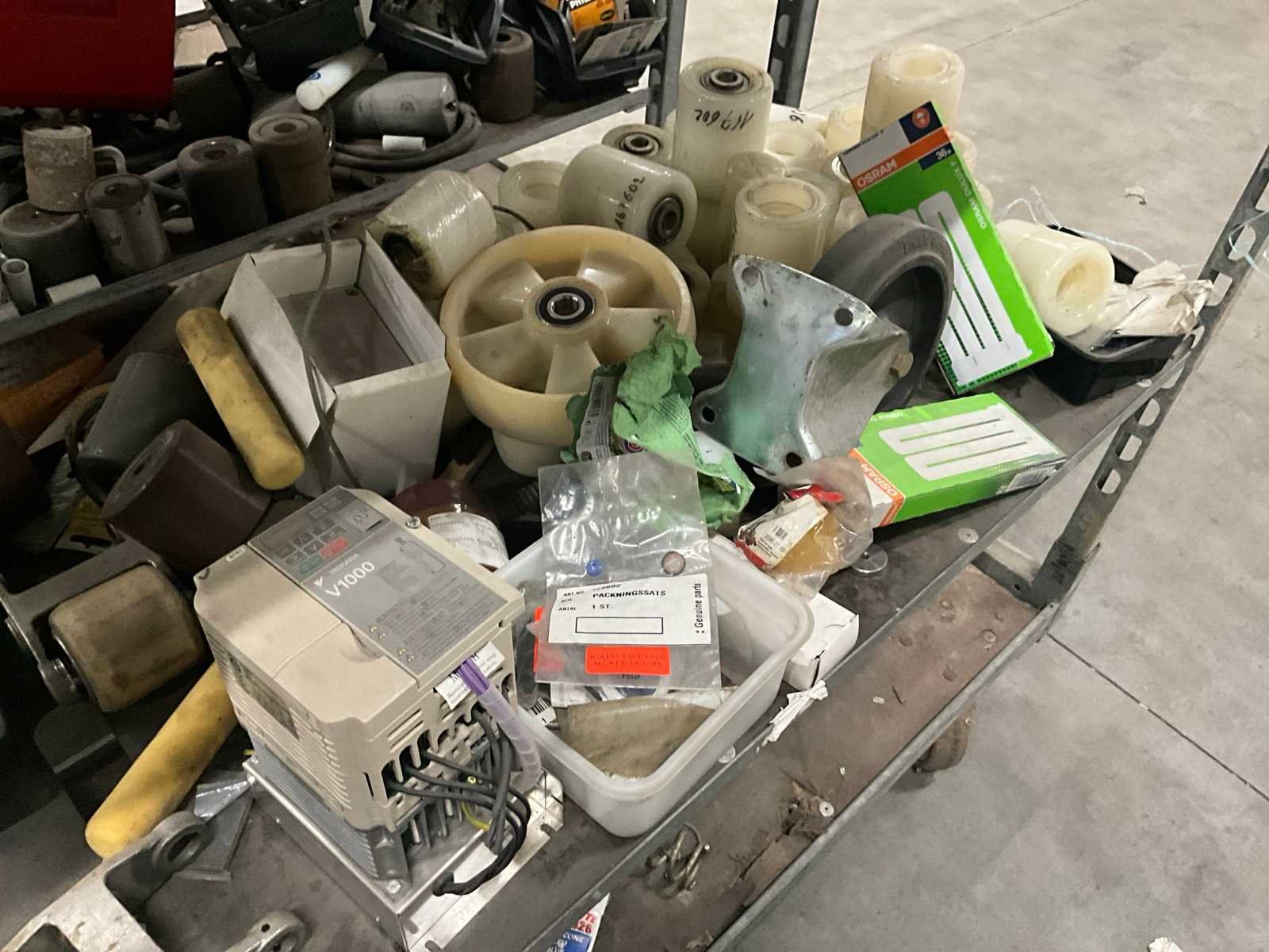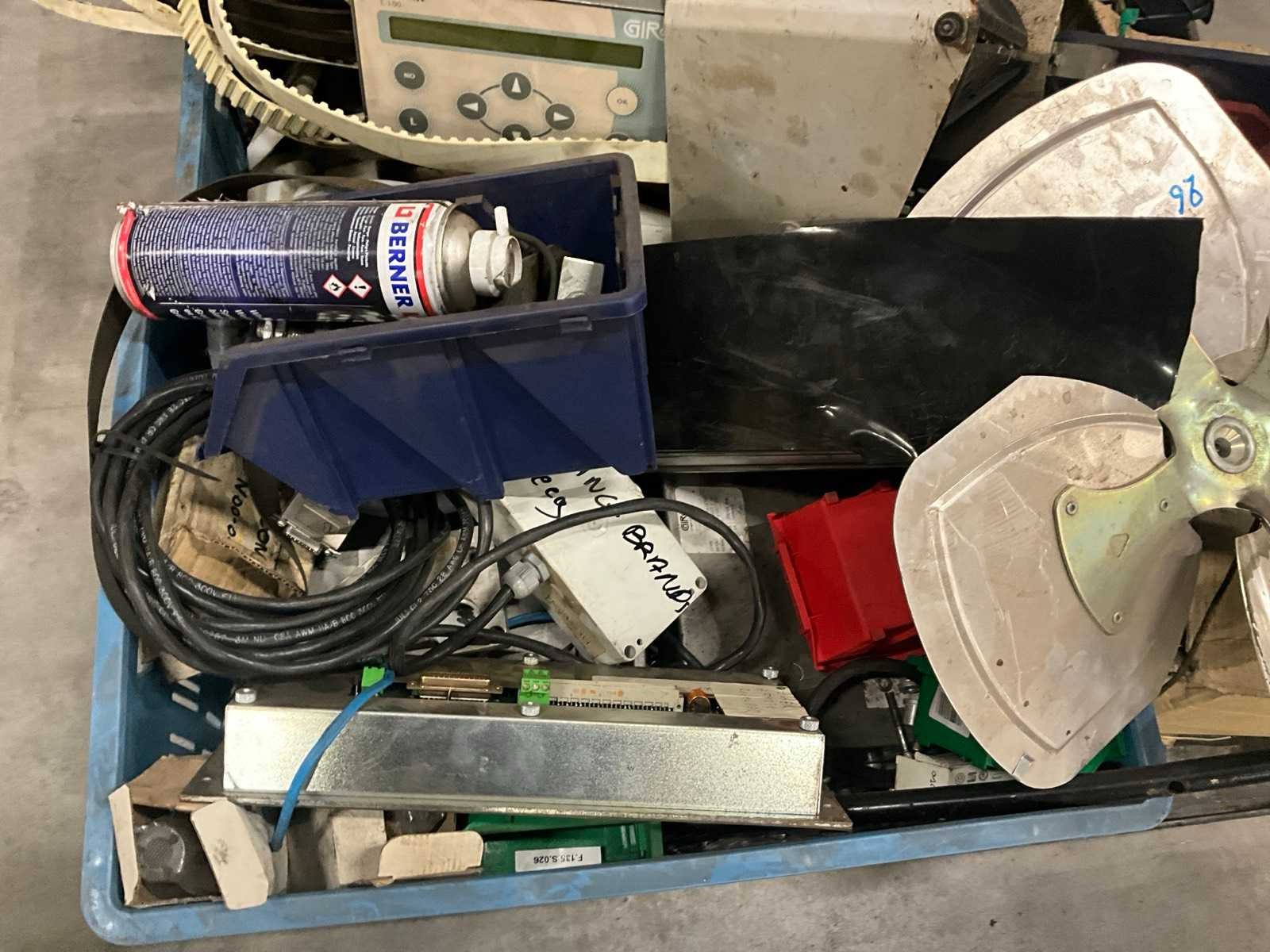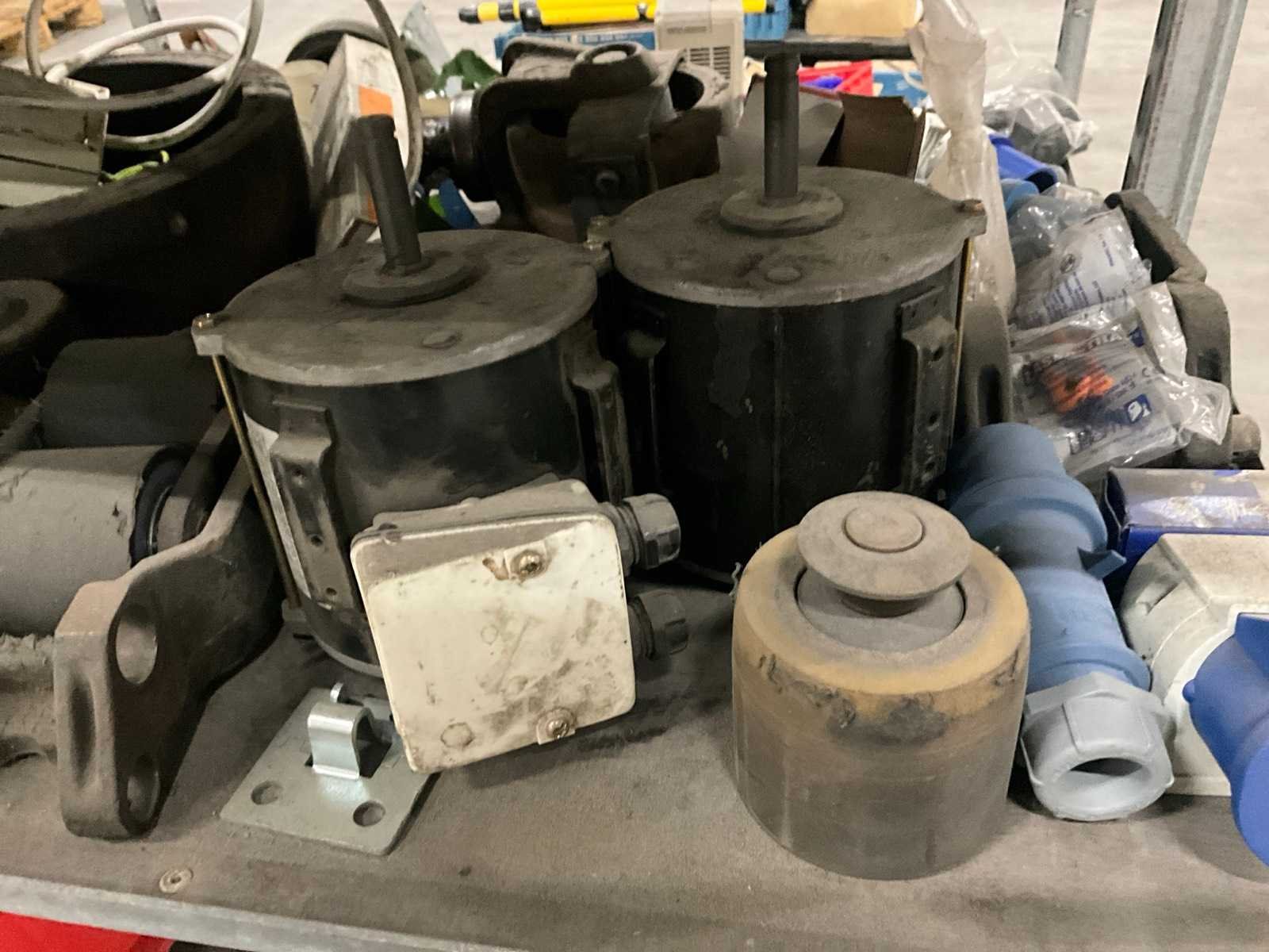 Waaronder diverse wielen, gewichten, electromotoren, lampen, aandrijfriemen, waaronder liggende op 2 plantenkarren Nee