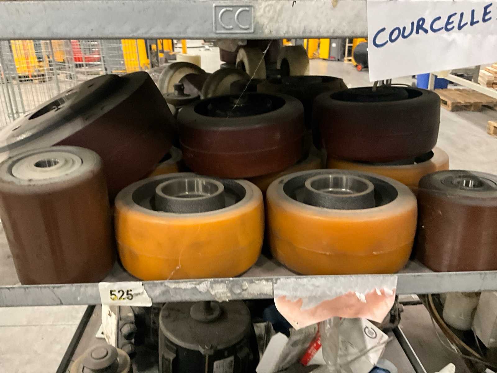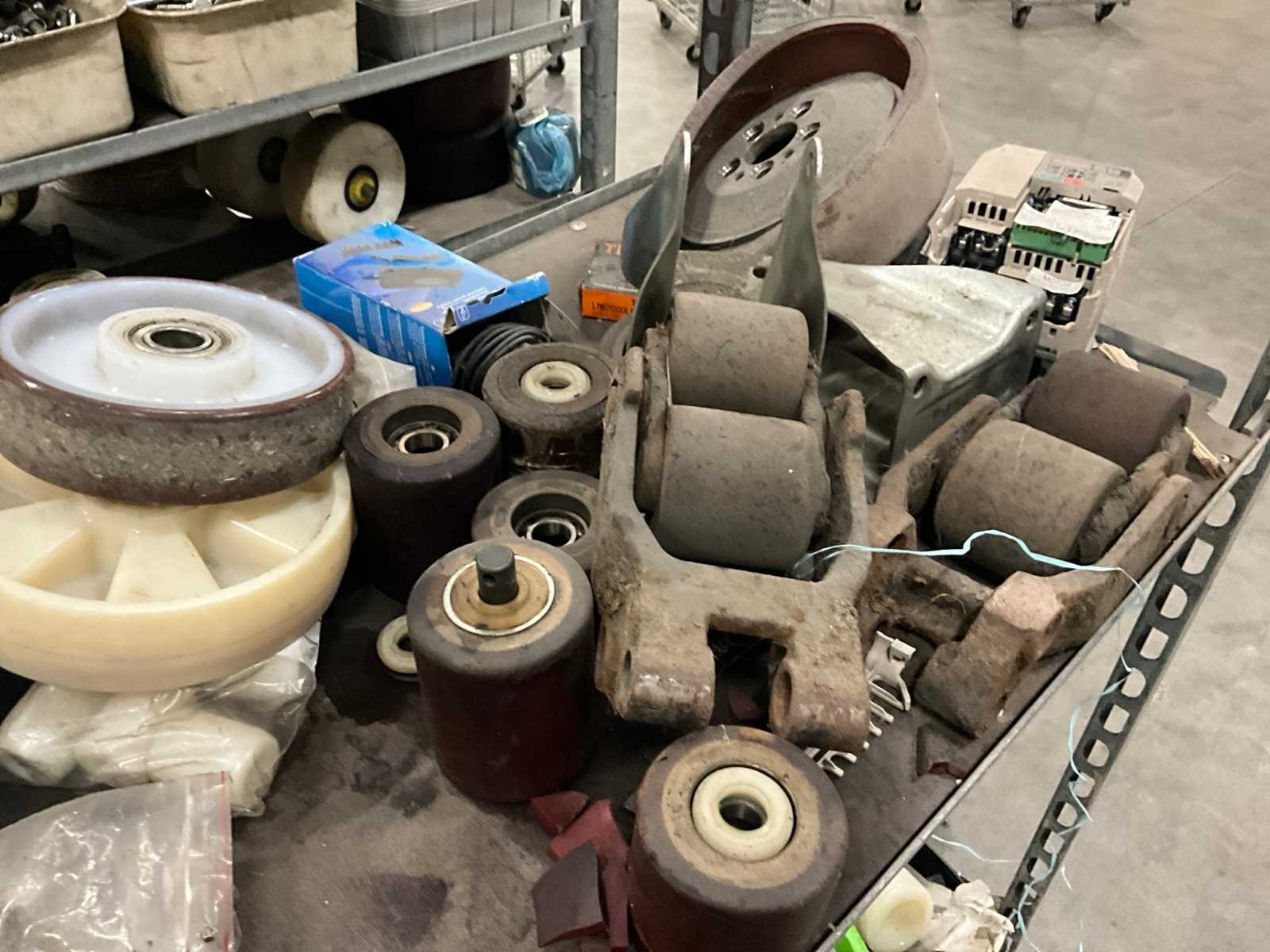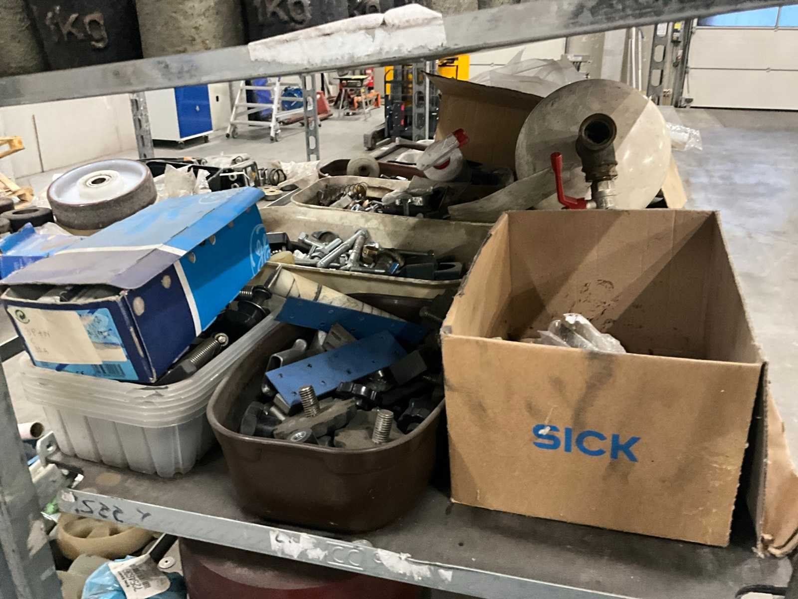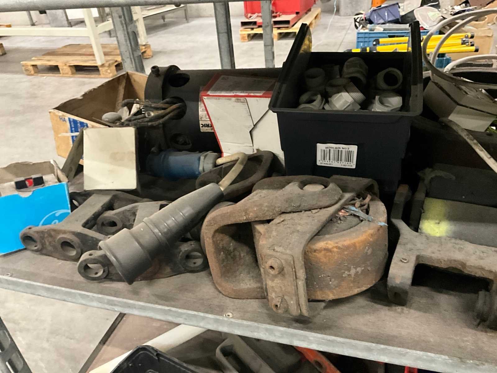 Waaronder diverse wielen, gewichten, electromotoren, lampen, aandrijfriemen, waaronder liggende op 2 plantenkarren Nee