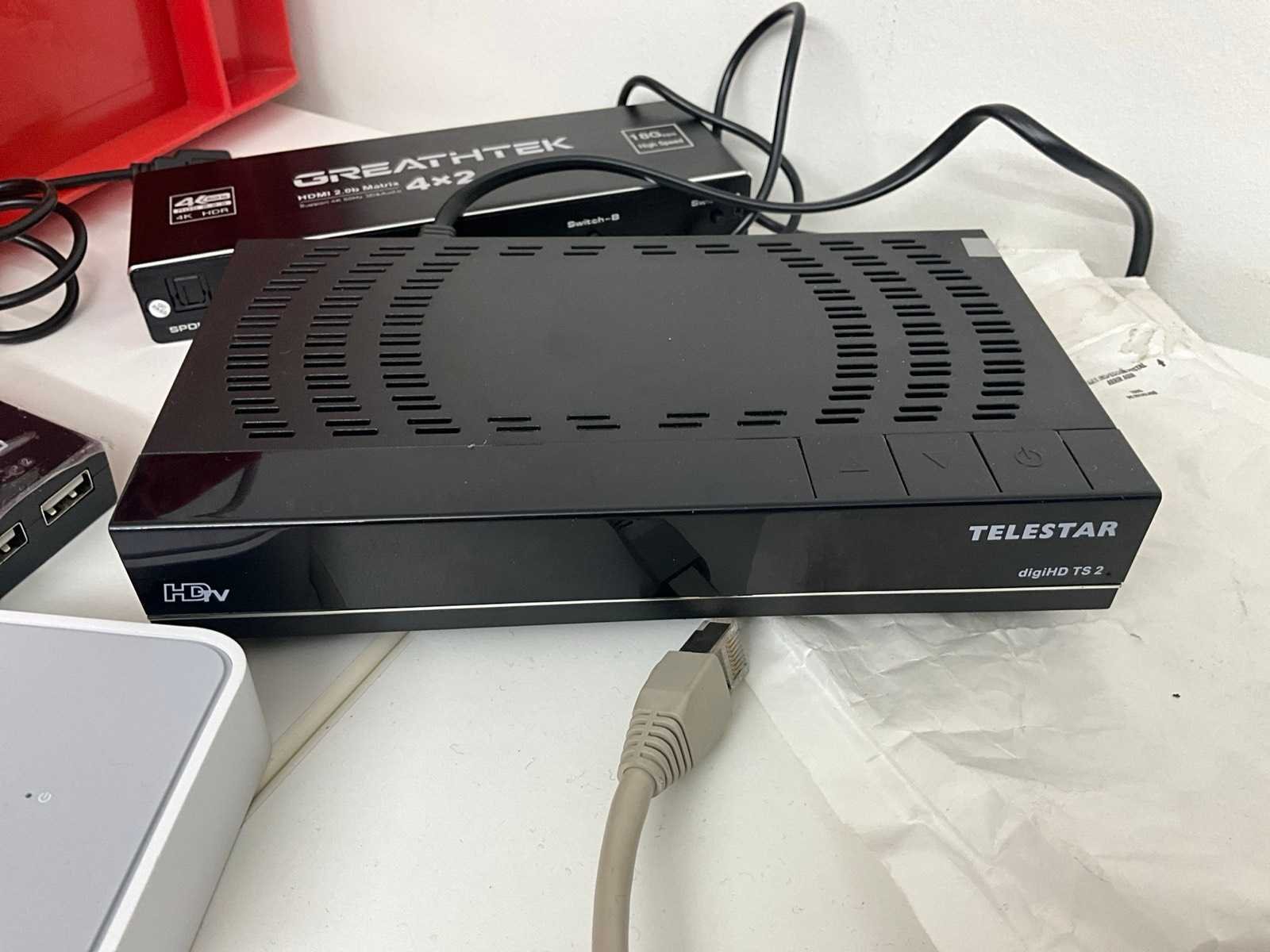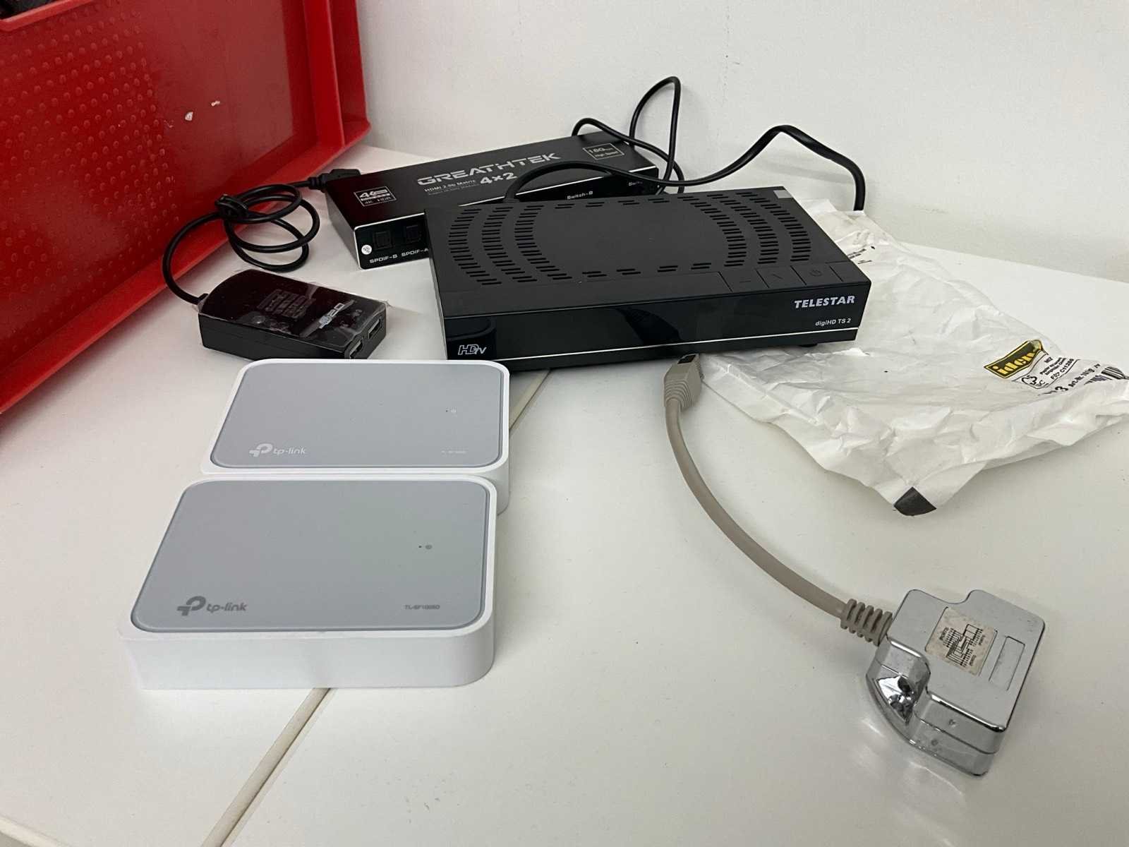 Bestaande uit 5 diverse Terra Thinclient, waaronder 2x in originelere verpakking. 1x Terra STD/BTO, 1x Telestar digihd TS 2, 1x Greathtek, 2x Tp-link TL-SF1005D, 6 diverse Qwerty toetsenborden, 5 diverse muizen, 1x Fritz!box 7490, Sophos RED 50 en diverse Voedingskabels, adapters. Nee