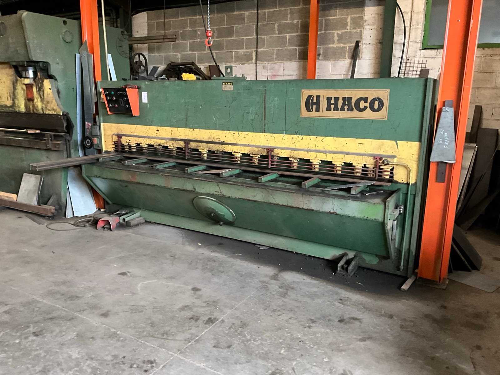 Nee Merk: Haco Type: TS3006 Bouwjaar: 1990 Serienummer: 802888 Snijlengte: 3050mm Max. plaatdikte: 6mm Aansluiting: 380V Afmeting l: 3650mm Afmeting b: 1850mm Afmeting h: 1800mm