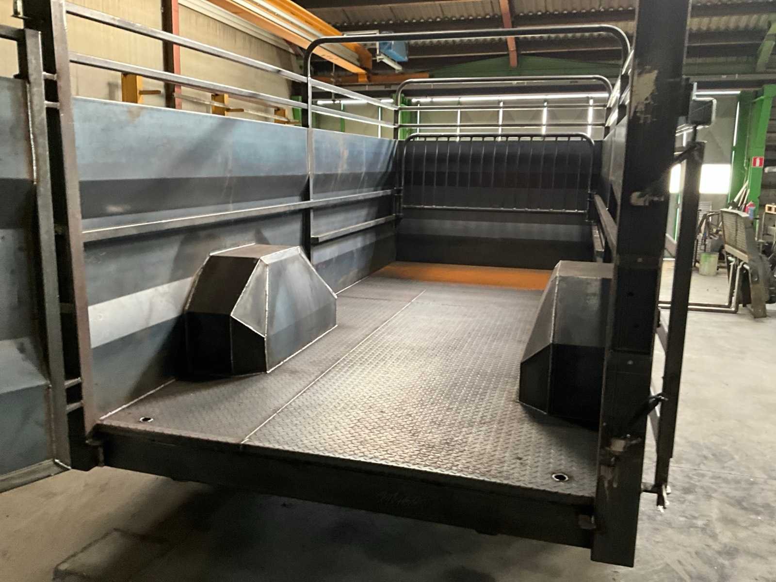 • casco onafgewerkt Voorzien van: • steunpoot • uitschuifbaar hek rechterzijde met railsysteem • hydraulisch hefbaar • BPW as • achterdeur opent manueel naar links • verstelbaar hek binnenzijde Nee Afm. binnenzijde l.: 5160mm Afm. binnenzijde b: 2220mm Afm. binnenzijde h: 2040mm Totale afmeting Breedte: 2500mm