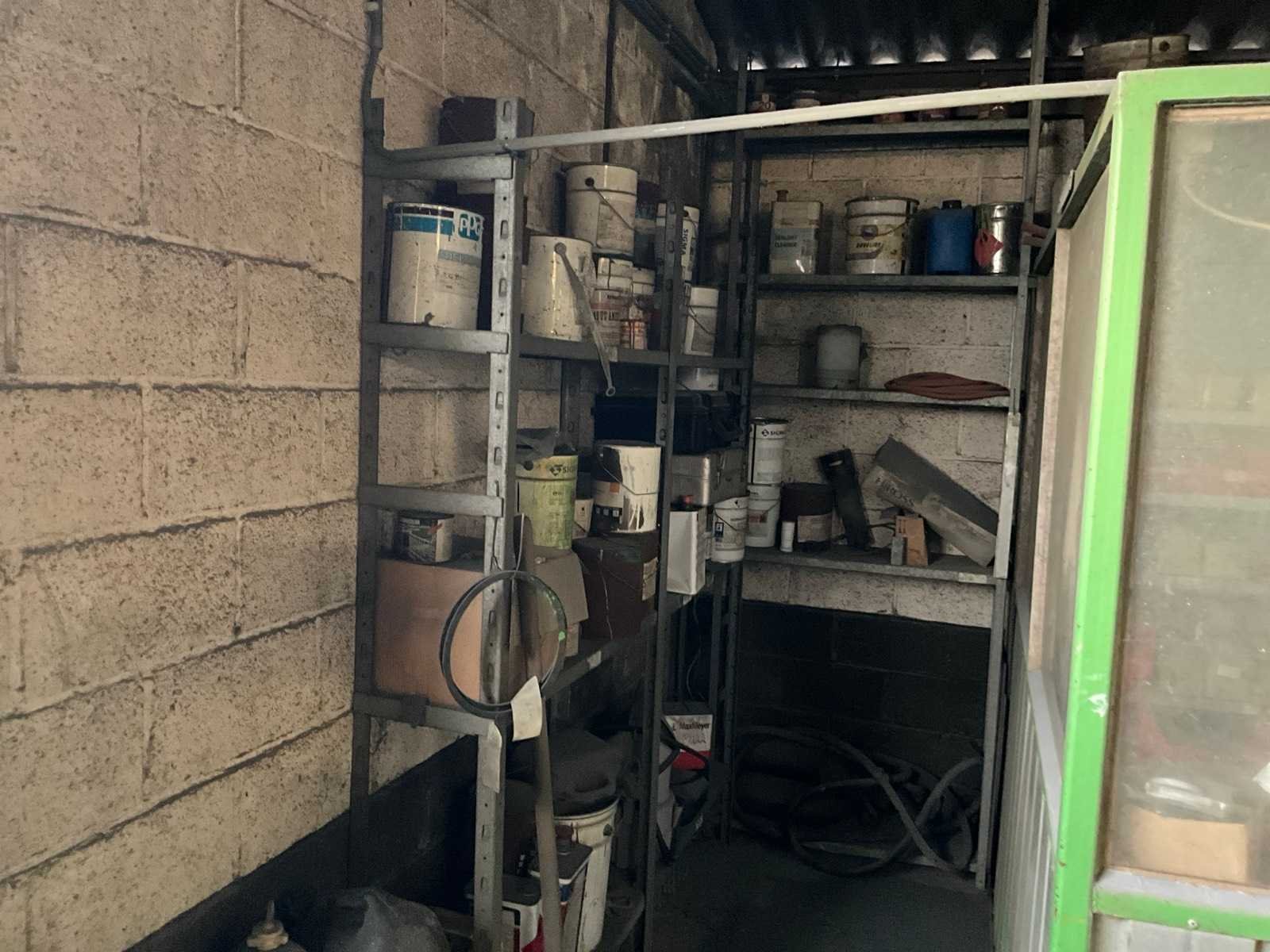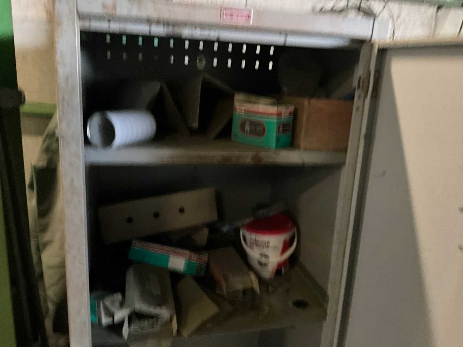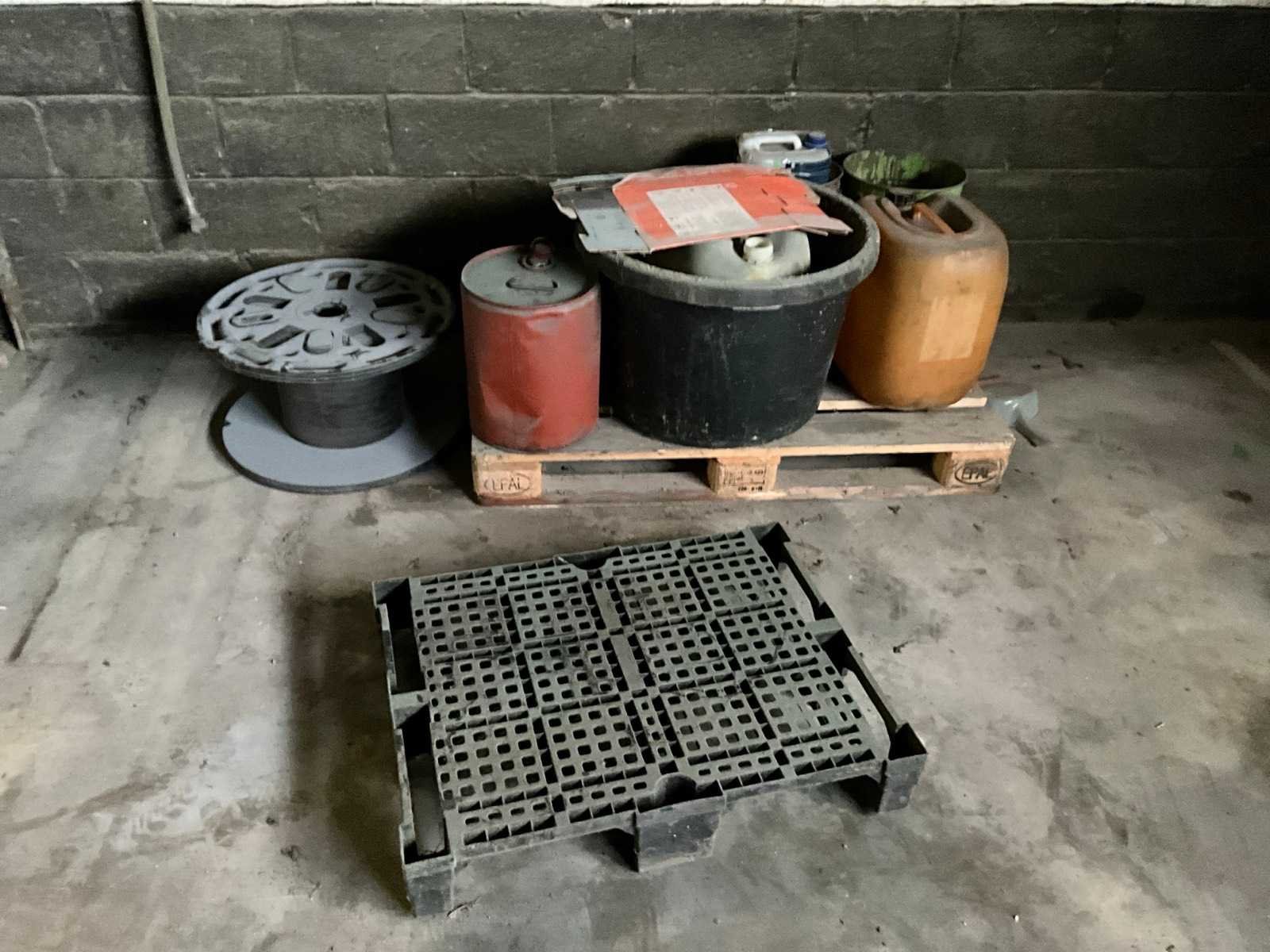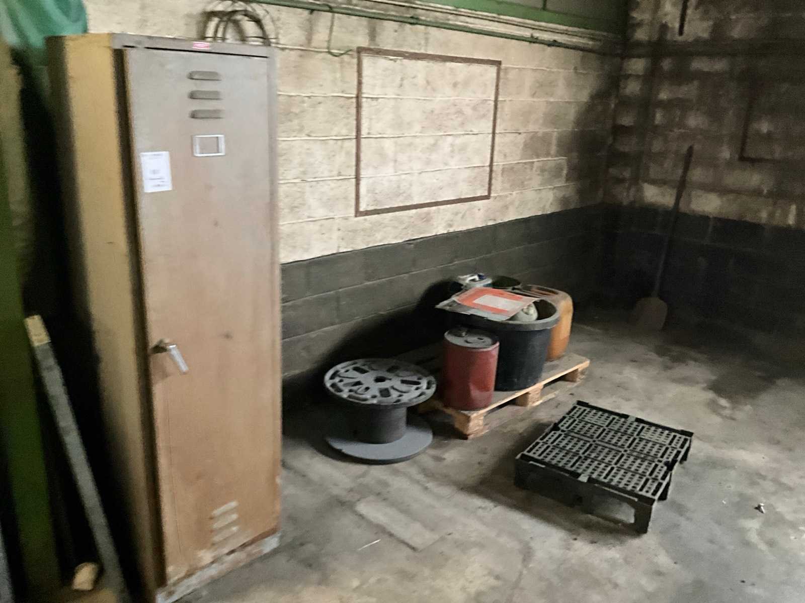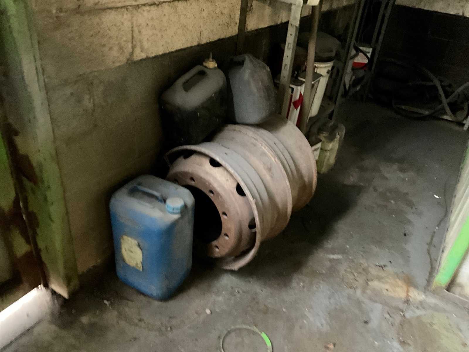 Waaronder lockerkast met inhoud, pallet met aandrijfriemen, 2 velgen, legbordstelling met inhoud en kabelhaspel Nee