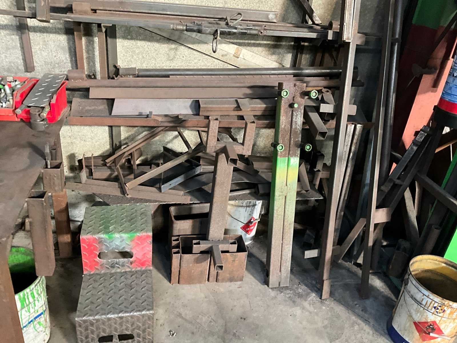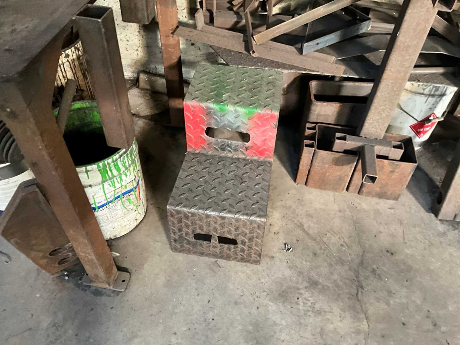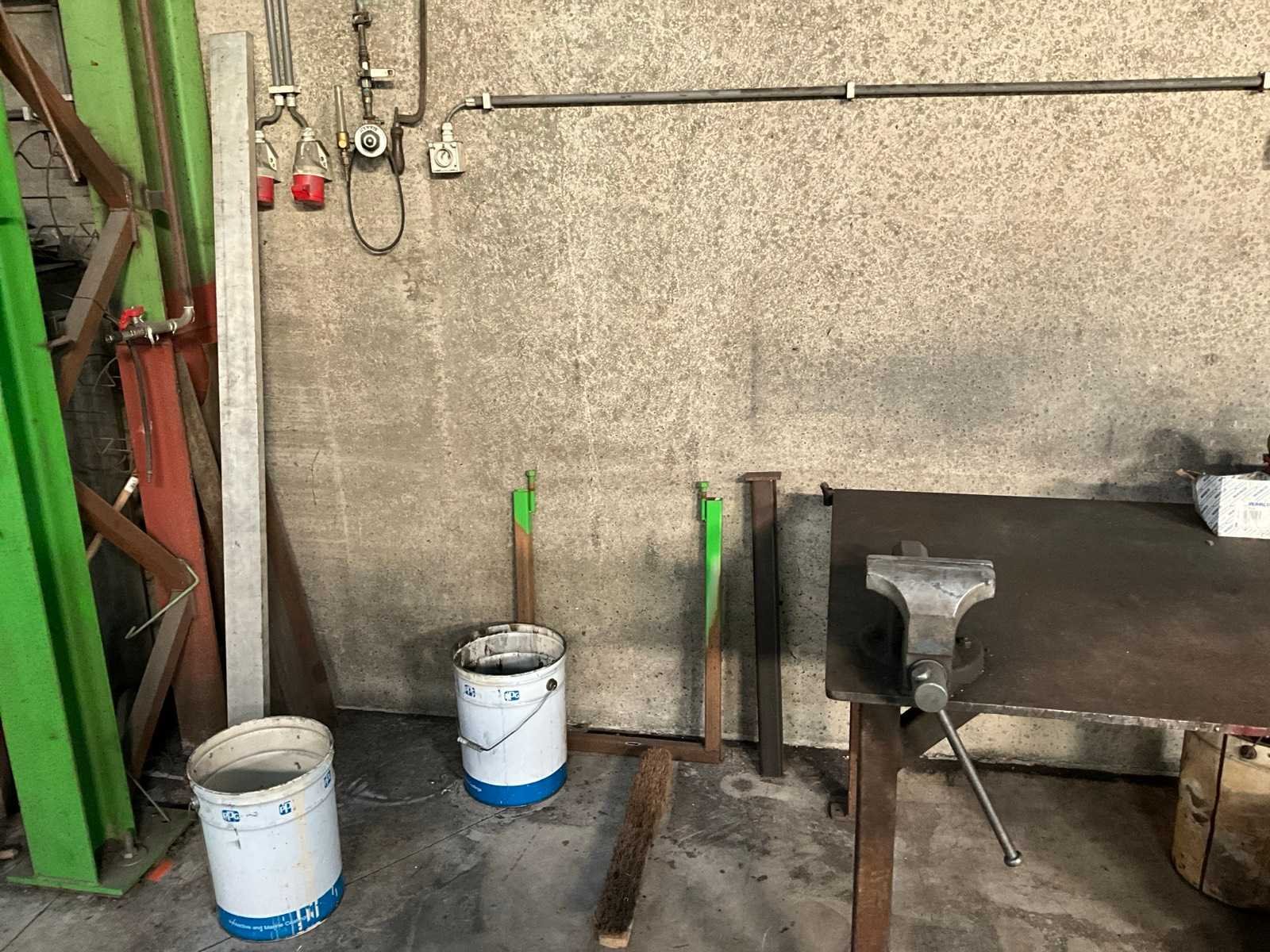 Voorzien van bankschroef, inclusief metalen trapje, metalen halffabrikaten, emmers restmetaal, staande in 1 loodsvak Nee Breedte: 1000mm Lengte: 1500mm Hoogte: 830mm