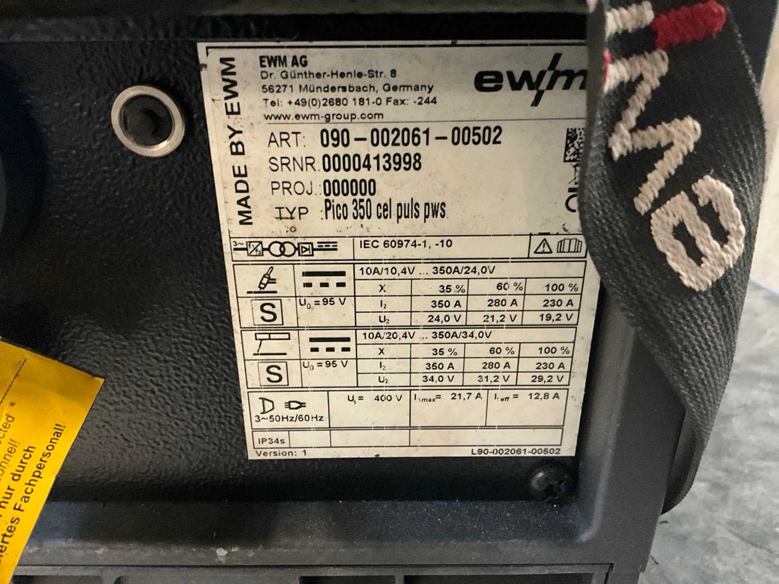 Met impulsfunctie, zonder lastoorts Nee Merk: EWM Type: Pico 350 cel puls pws Serienummer: 0000413998 Inschakelduur: 35% Max. lasvermogen: 350A Aansluiting: 400V Digitale uitlezing: true