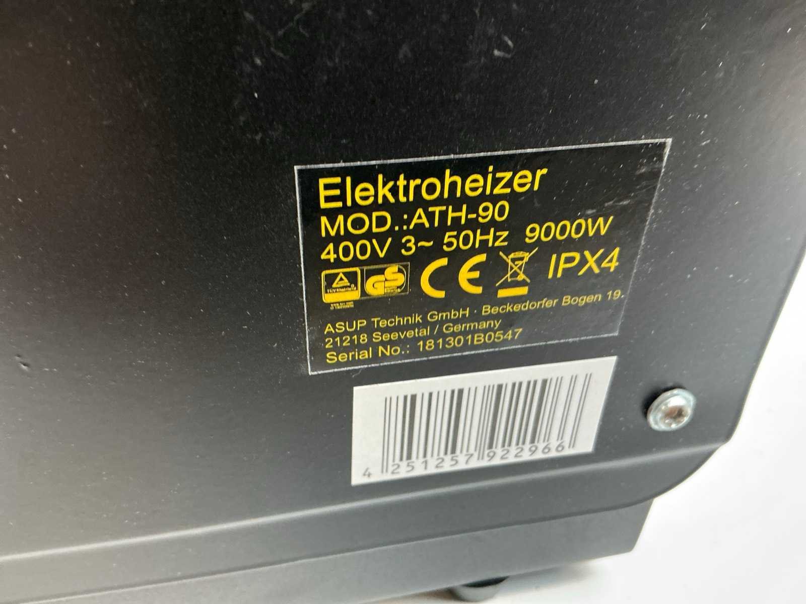 Ongebruikt Nee Merk: Asup Type: ATH90 Serienummer: 181301B0547 Vermogen: 9kW Ventilator: true Thermostaat: true Aansluiting: 400V