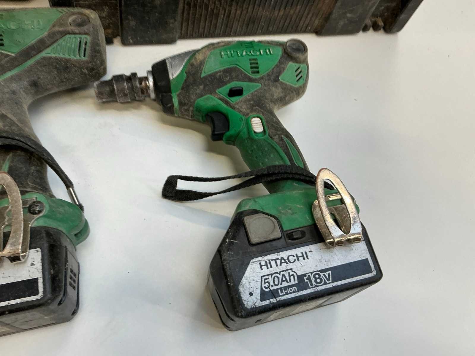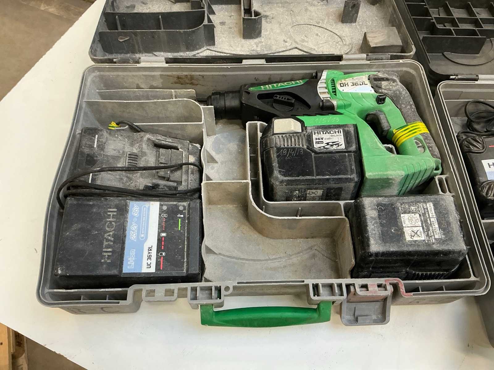 Zijnde - WR18DSDL schroefboormachine, met 1x 18V-accu, zonder lader, s/n J740581 - DV18DSDL schroefboormachine, met 2x 18V-accu, met lader, s/n J650470 - WH14DL schroefmachine, met 2x 14,4-accu, met lader, s/n J500121 - DH36DL boorhamer, met 2x 36V-accu, met lader, s/n 721116, in 3 koffers Nee Merk: Hitachi