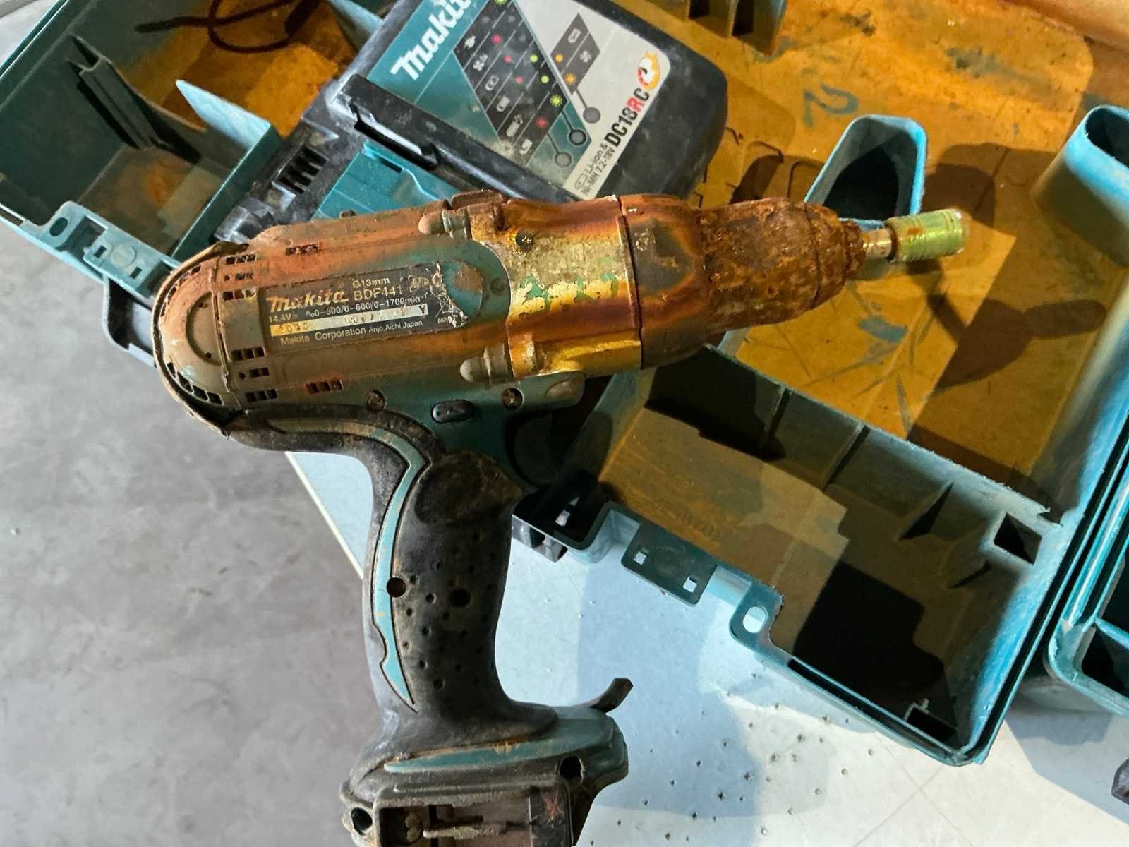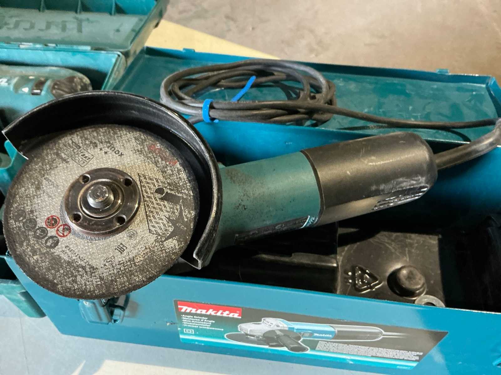 1x 9558HNR elektrische haakse slijpmachine, Ø125mm, s/n 117541R; 1x HR2470FT elektrische boorhamer, s/n 480099Y; 1x BDF441 schroefboormachine, zonder accu, met lader, s/n 2413xxY; inclusief Makita boren-/bits set in koffer Nee Merk: Makita Met koffer: true