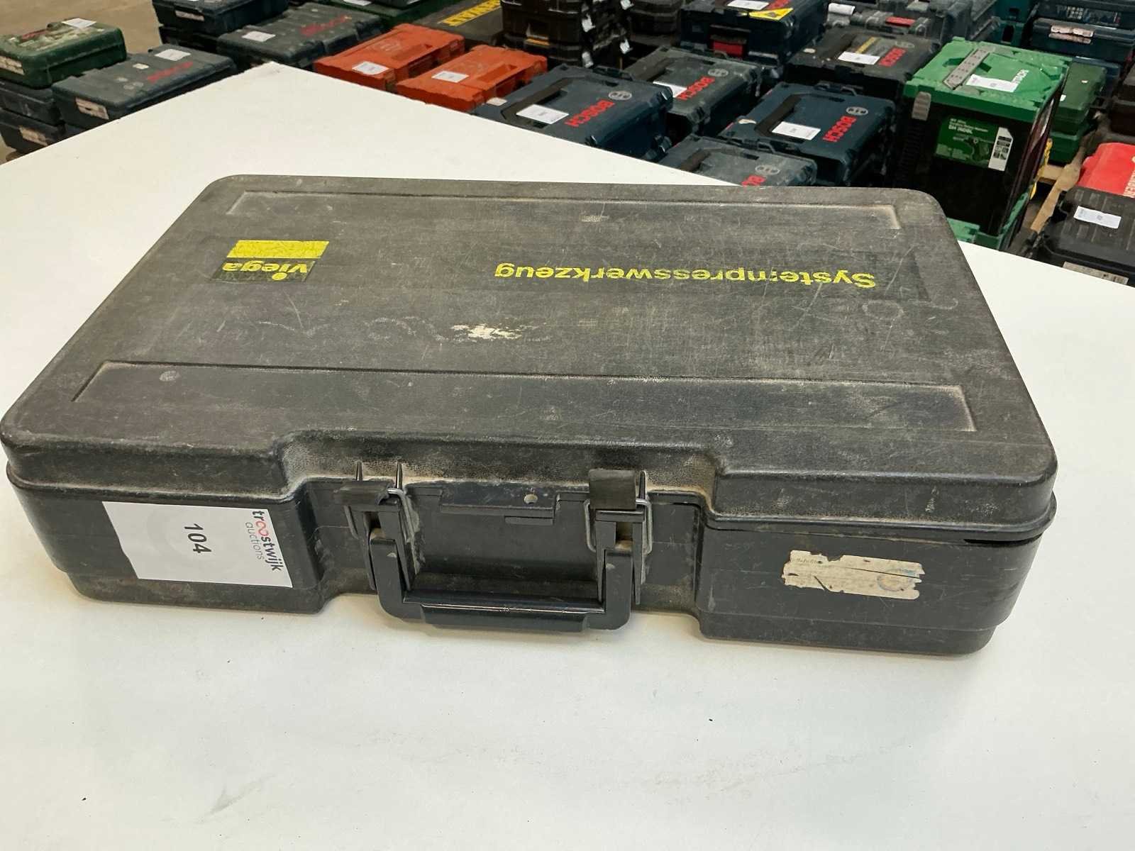 Inclusief 3 persbekken Nee Merk: Viega Type: Pressgun 4B Serienummer: O0907028 Accu lader: true Met koffer: true Accuspanning: 14.4V Aantal accu's: 0