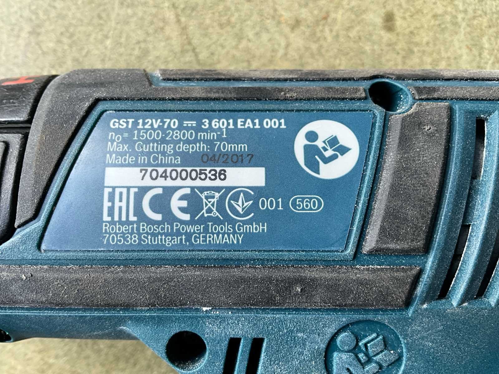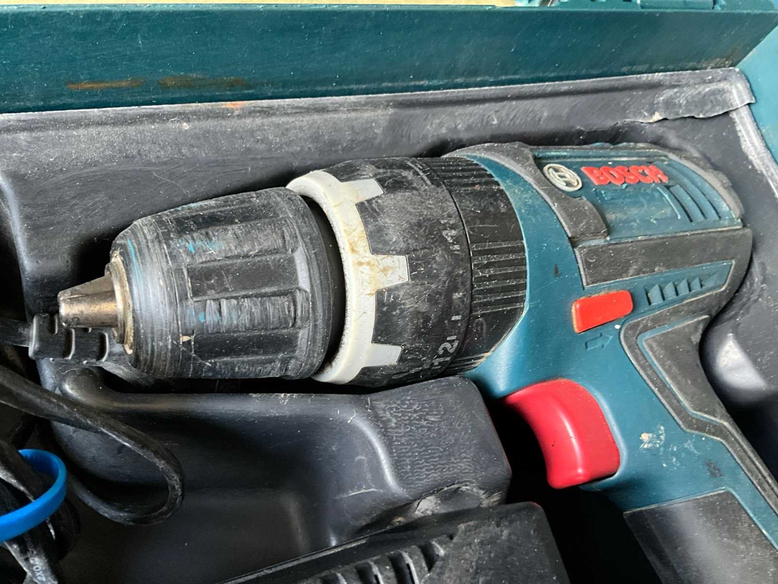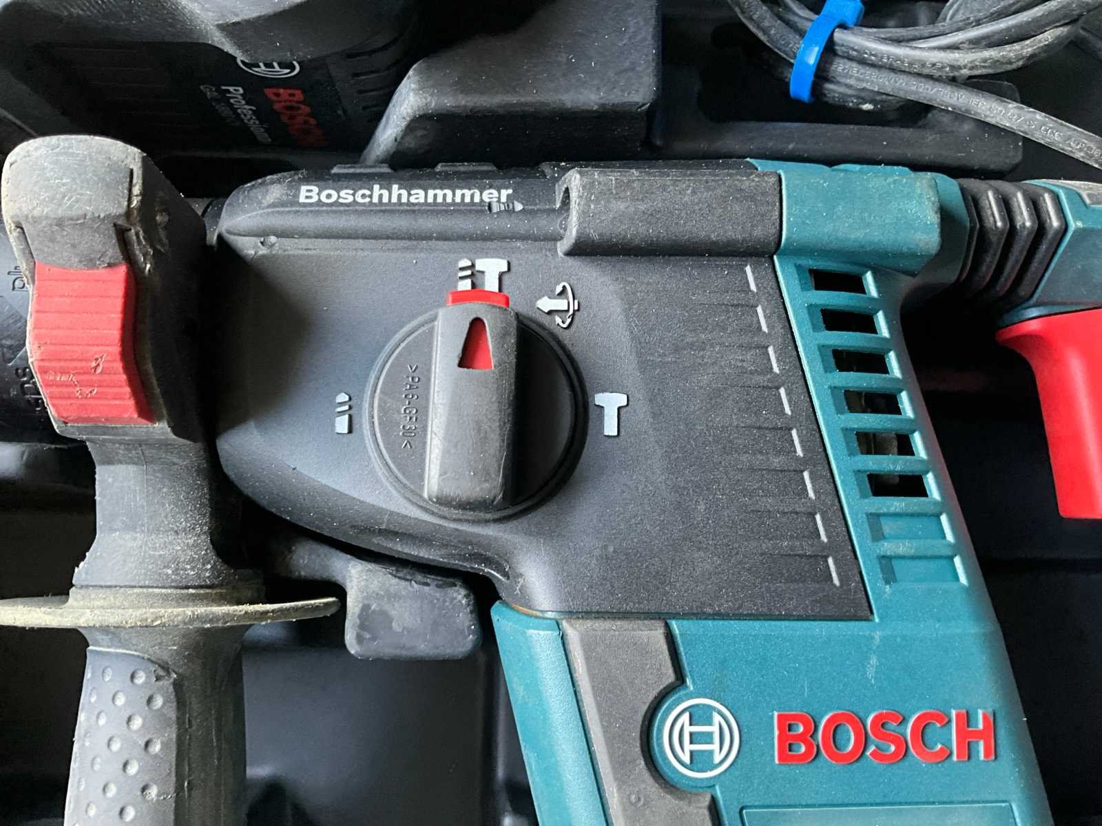 Zijnde 1x klopboormachine GBH 18V-26 s/n 3611J09000 met 1 accu en lader, 1x boormachine zonder typeplaatje met 2 accu’s en lader, 1x schroefmachine GSR 14,4V-LI met 2 accu’s en lader en 1x decoupeerzaag GST12V-70 s/n 704000536 met 1 accu No Merk: Bosch Met koffer: true