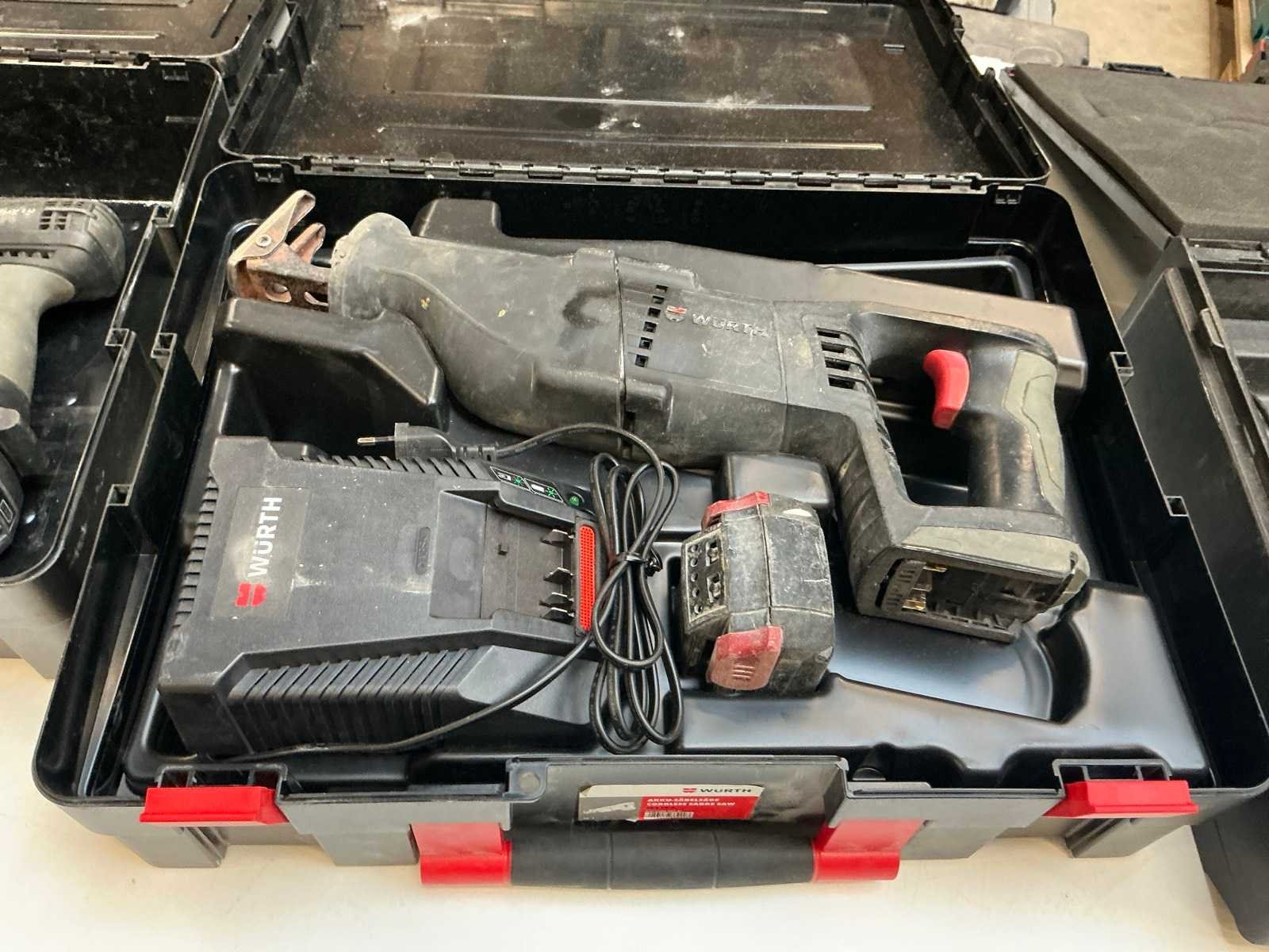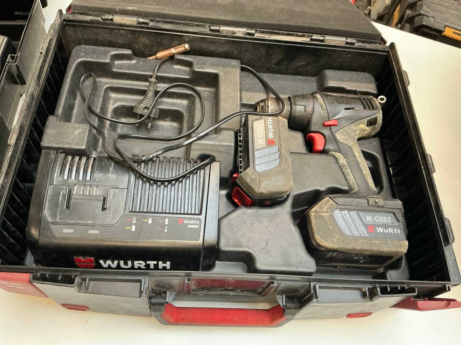 Zijnde: - BS14-A Compact schroefboormachine, met 1x 14,4V-accu, zonder lader, s/n 988494620112002547 - BS14-A Compact schroefboormachine, met 2x 14,4V-accu, zonder lader, s/n 988495360518011406 - SBS 18-A reciprozaag, met 1x 18V-accu en lader, s/n xxx96060502008045 - BS18 Compact schroefboormachine, met 2x 18V-accu en lader, s/n 392018 in 3 koffers Nee Merk: Würth