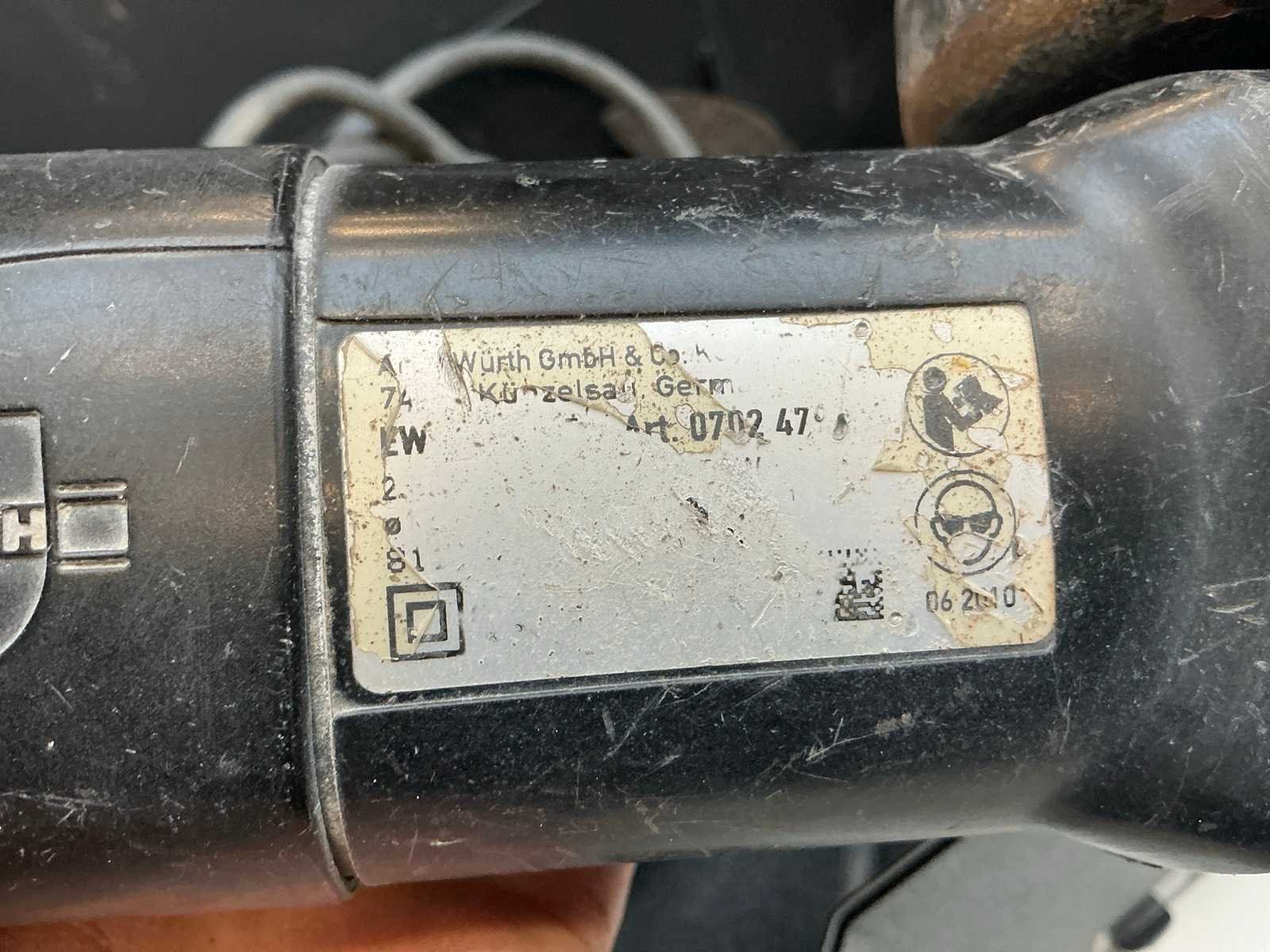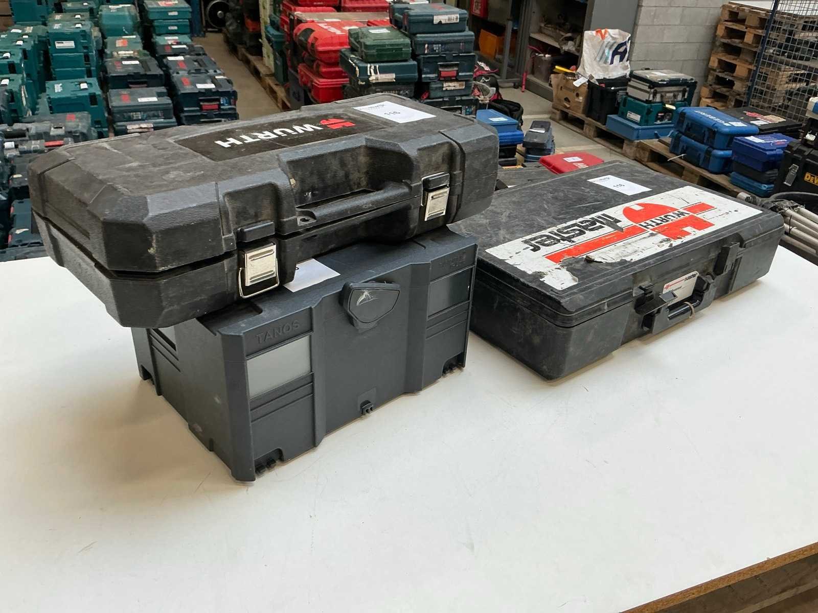 Zijnde: - MH10-SE breekhamer, s/n 988491551004003492 - EWS 10-125 haakse slijpmachine Ø125mm - SBS 1100-E reciprozaag, s/n 879019411133202085 Nee Merk: Würth Aansluiting: 230V Met koffer: true