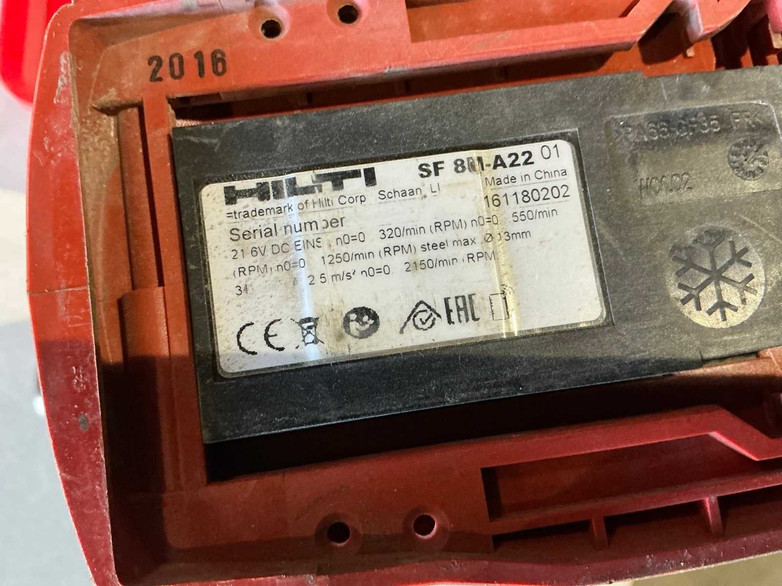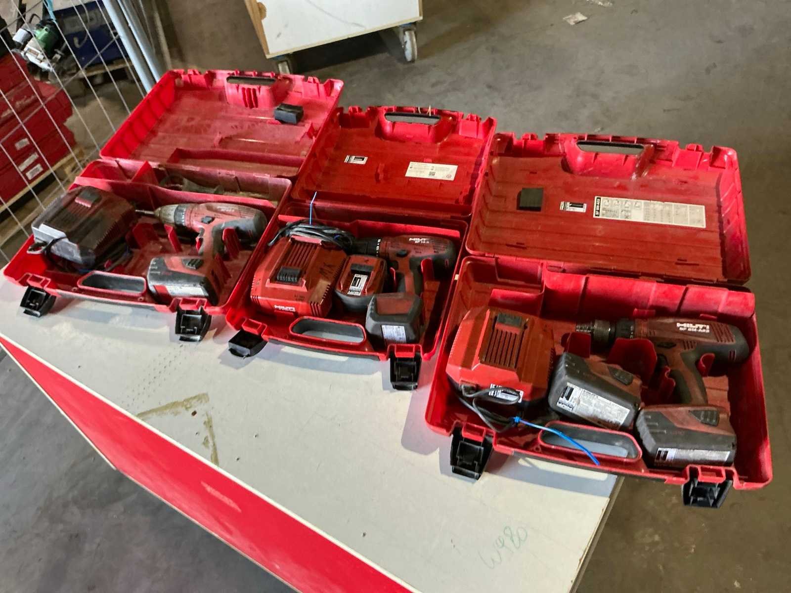 1x SF 8M-A22, met 2x 21,6V-accu en lader, s/n 161180202; 1x SF 14-A, met 2x 14,4V-accu en lader, s/n 228905; 1x SF 22-A schroefboormachine, met 1x 21,6V-accu en lader, s/n 714381 Nee Merk: Hilti Met koffer: true