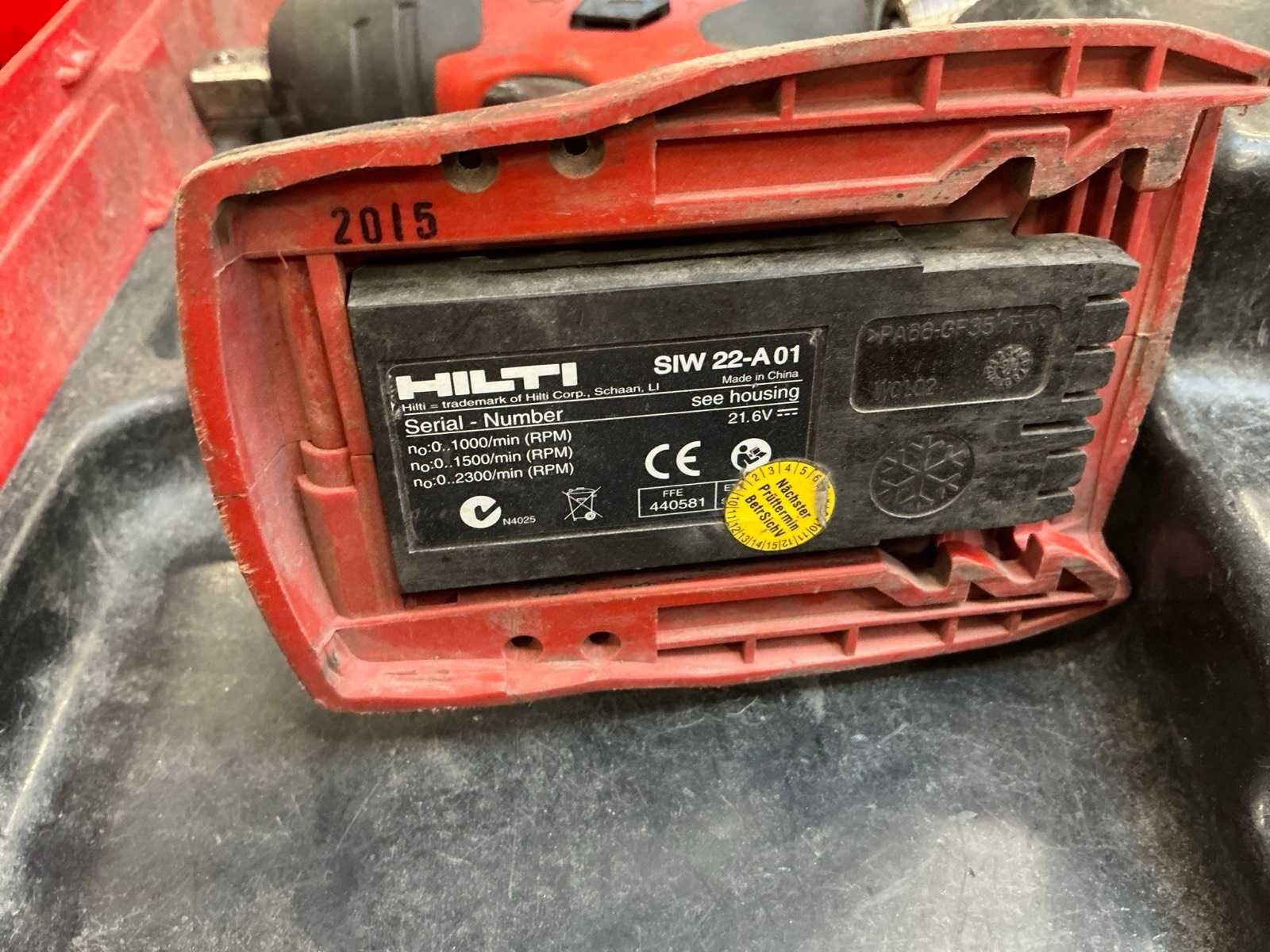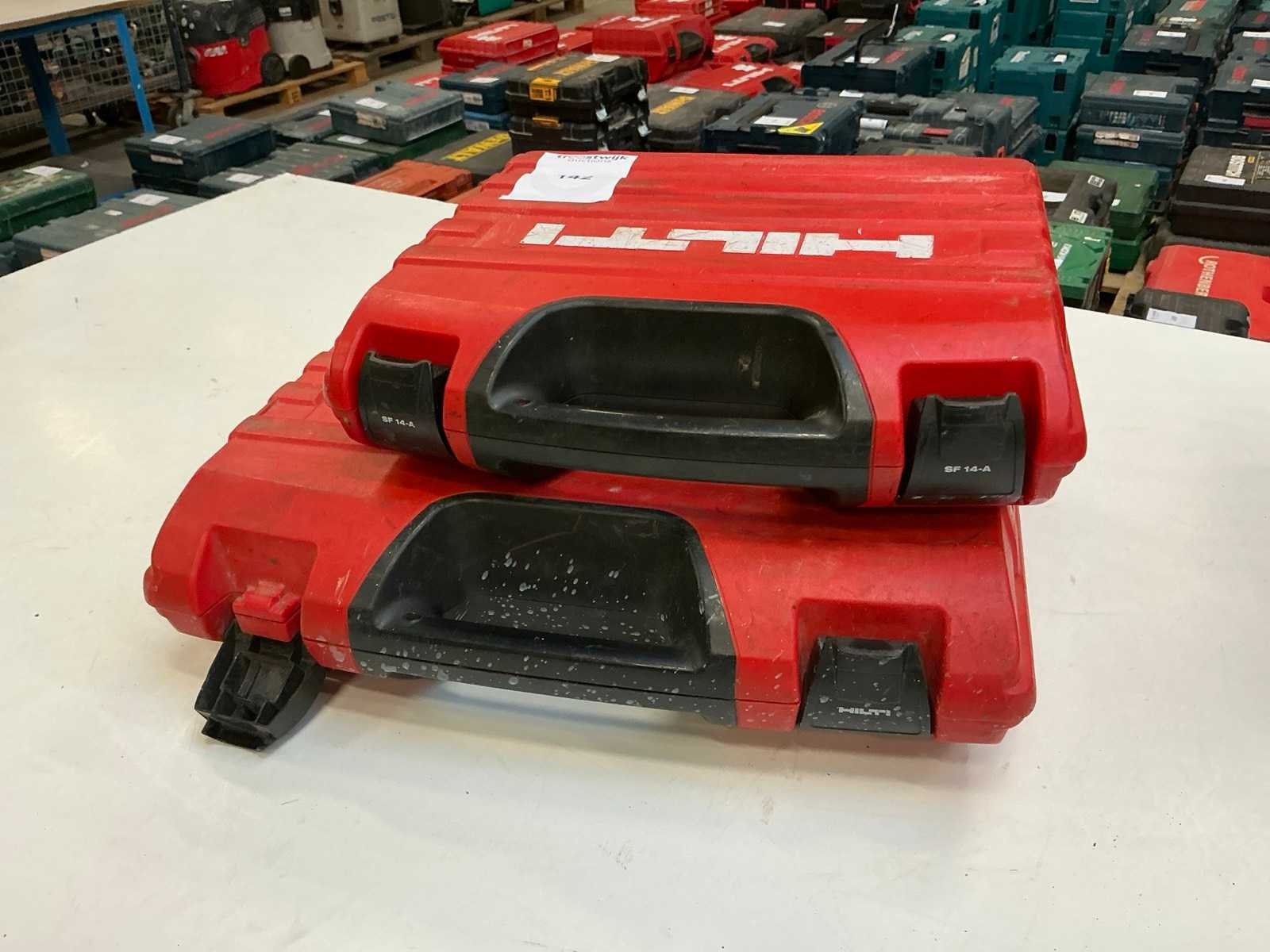 Zijnde: - SFC 22-A schroefboormachine, zonder accu/lader, s/n 1389715 - SIW 22-A01 slagmoersleutel, zonder accu/lader, s/n 1108871 - SF 14-A schroefboormachine, met 1x 14,4V-accu, geen lader, s/n 1054944 in 2 koffers Nee Merk: Hilti