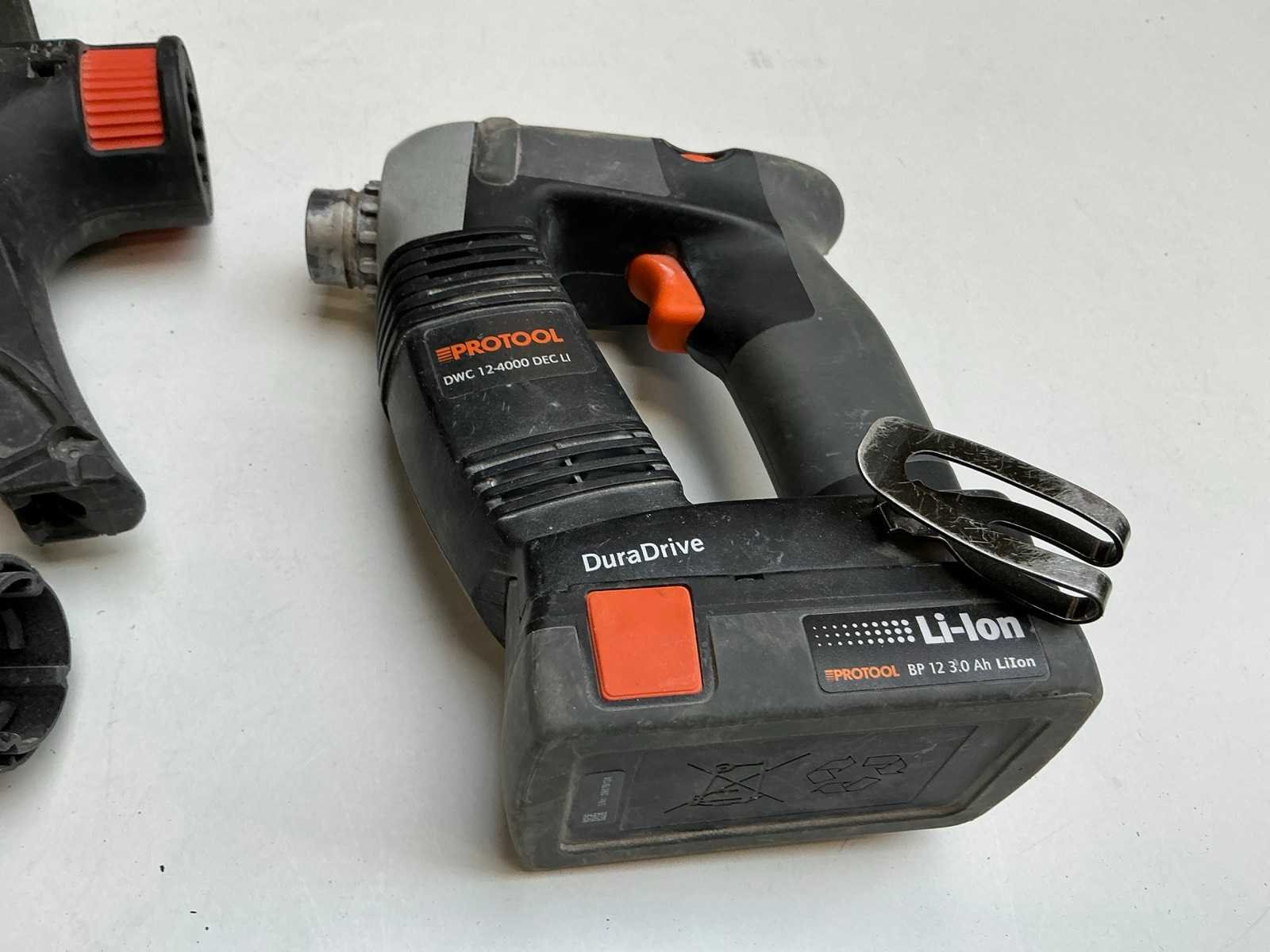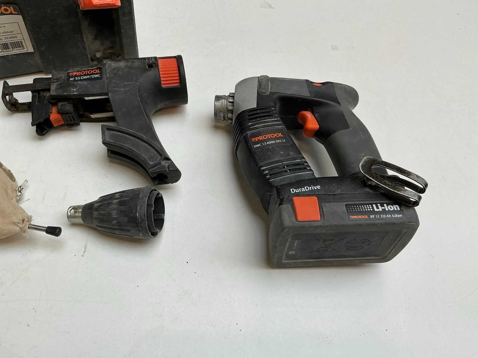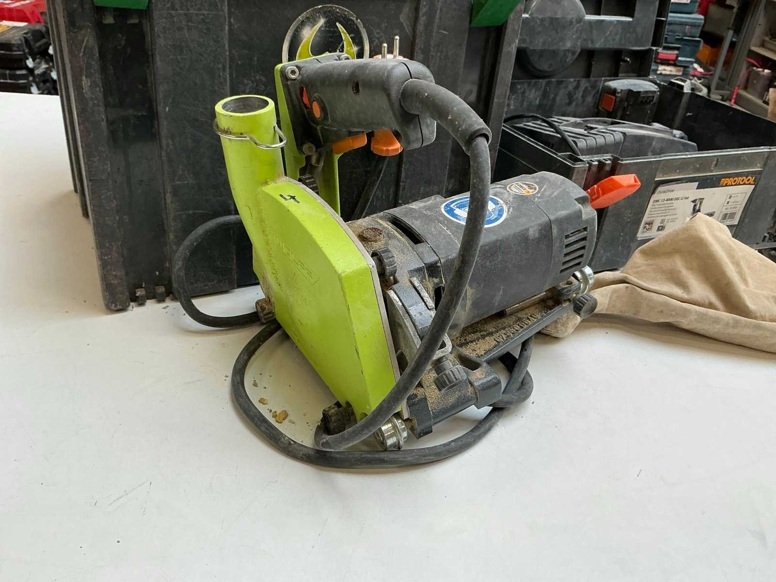 Zijnde: - Protool DWC 12-4000 DEC Li accu schroefautomaat, met 2x 10,8V-accu en lader, s/n 29079124 - Wolff Fräsmaster elektrische voegenfrees, s/n 181908 Nee Met koffer: true