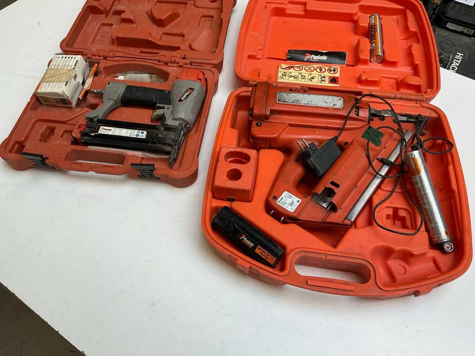 Met 1 accu inclusief 1 Paslode FN1850.1 pneumatische tacker, s/n 15/42510F Nee Merk: Paslode Model: IM350/90CT Accu lader: true Met koffer: true