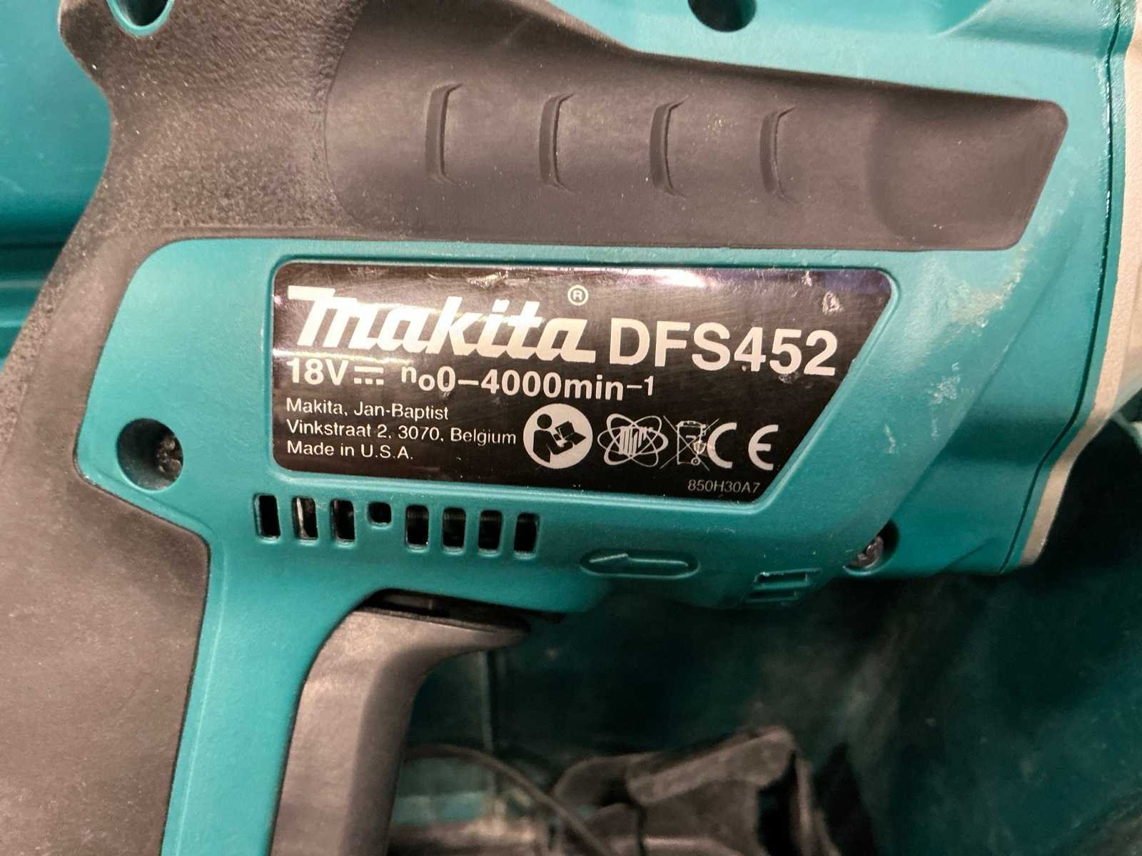 Zijnde: - BDA351 haakse schroefmachine, met 2x 18V-accu en lader, s/n 7439E - DFS452 schroefmachine, met 1x 18V-accu en lader, s/n 219035A - BDF452 schroefboormachine, met 1x 18V-accu en lader, s/n xxx92Y Nee Merk: Makita Met koffer: true