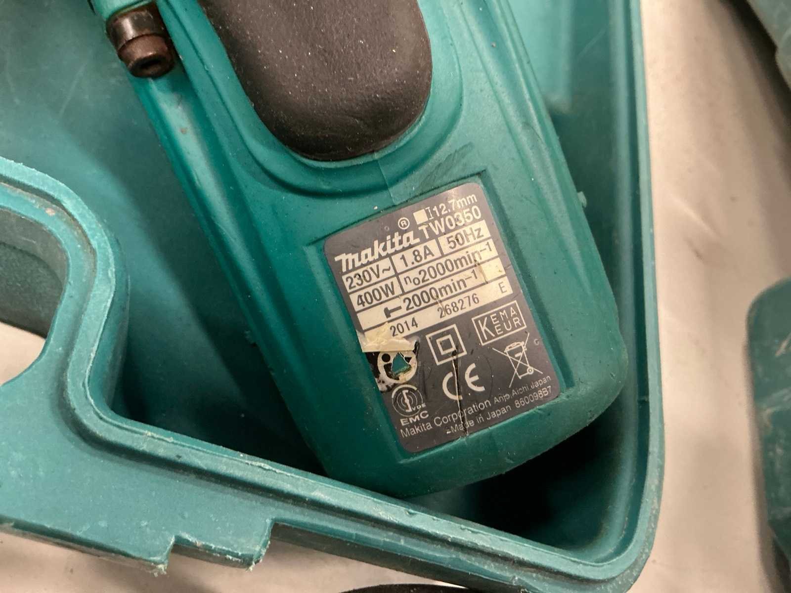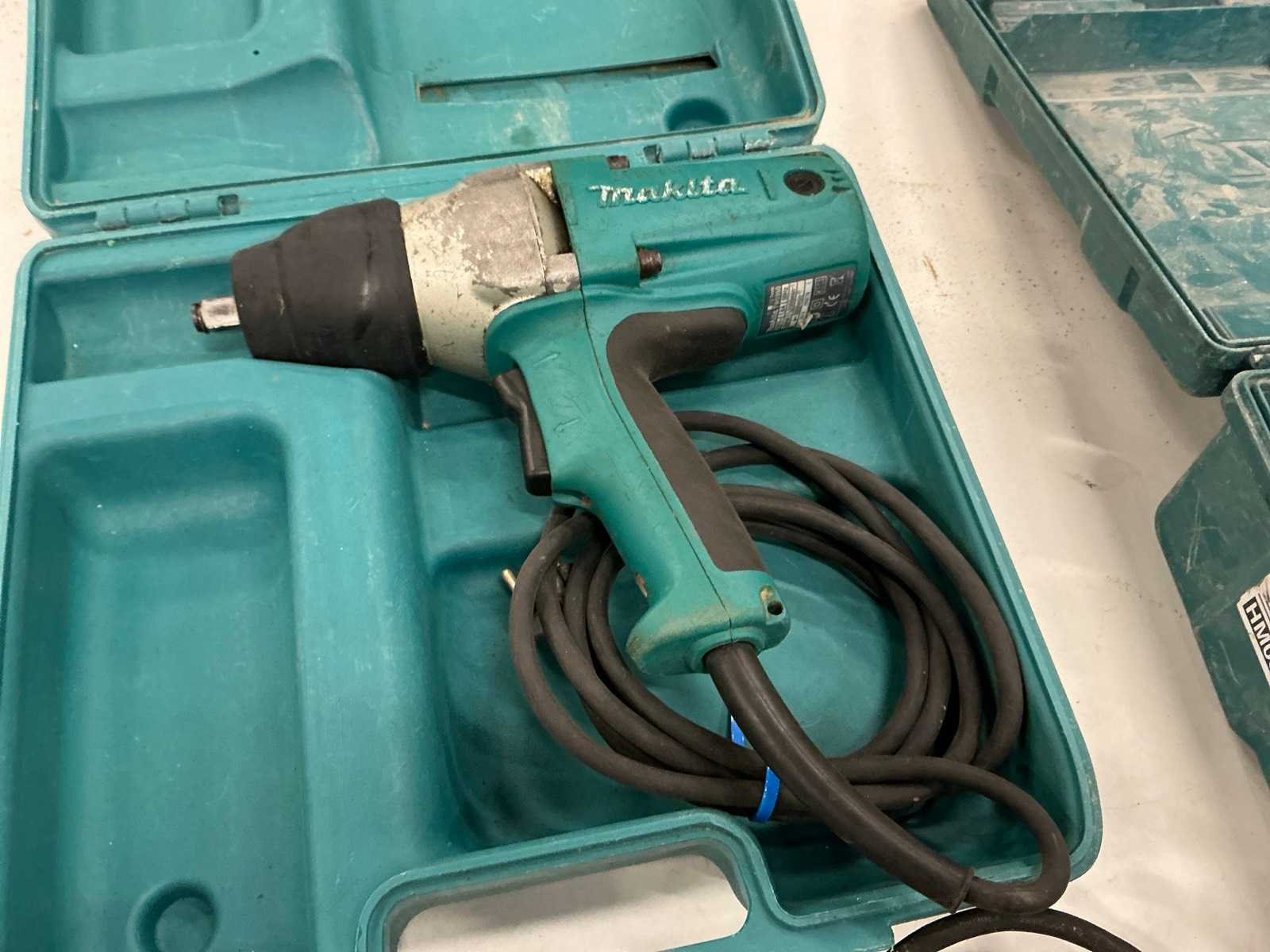 Zijnde: - HM0871C boor-/breekhamer, s/n 0061393Y, in koffer - GA9012C haakse slijpmachine Ø230mm, s/n 005893K - TW0350 slagmoersleutel, s/n 268276E, in koffer Nee Merk: Makita Aansluiting: 230V