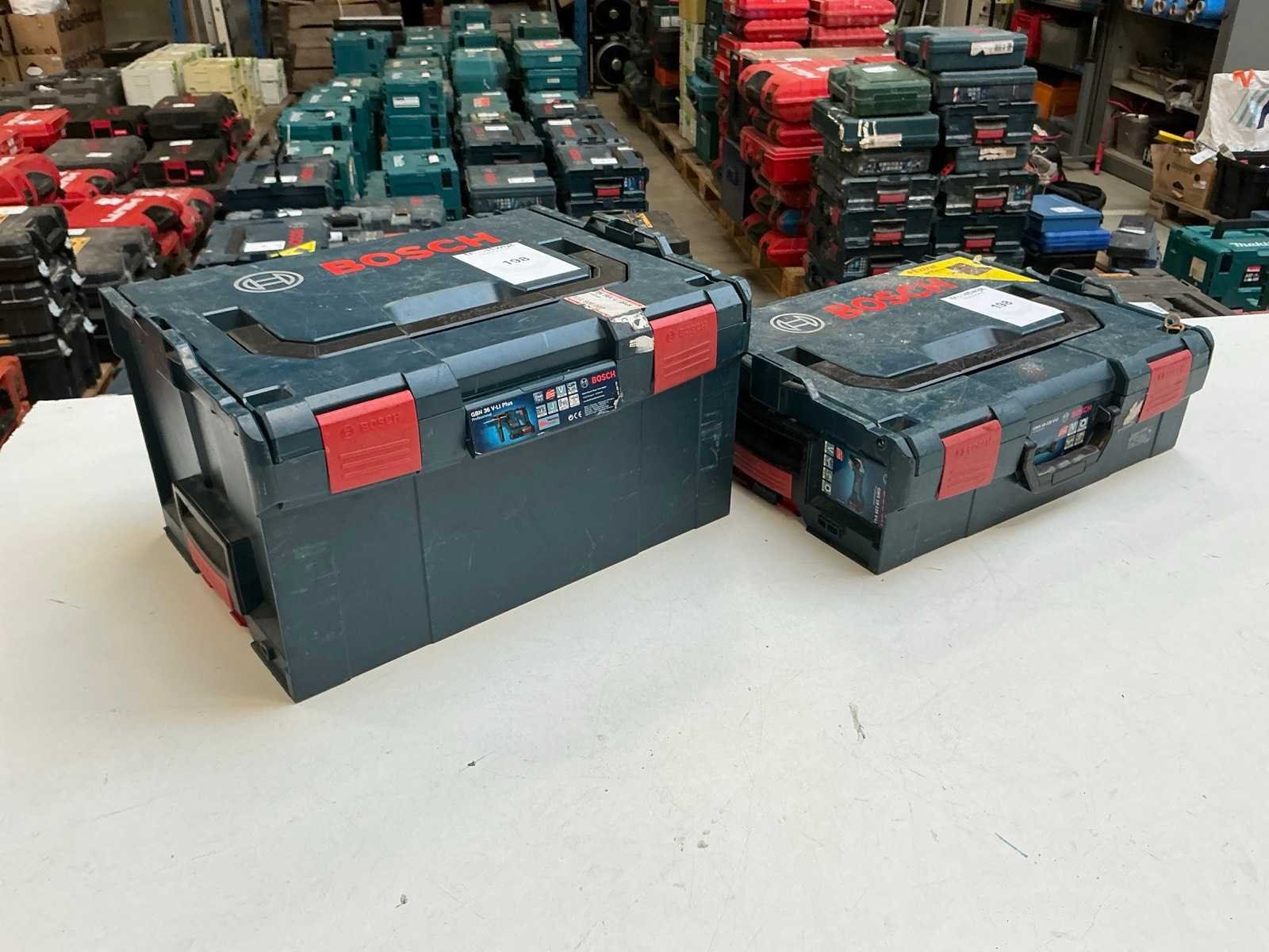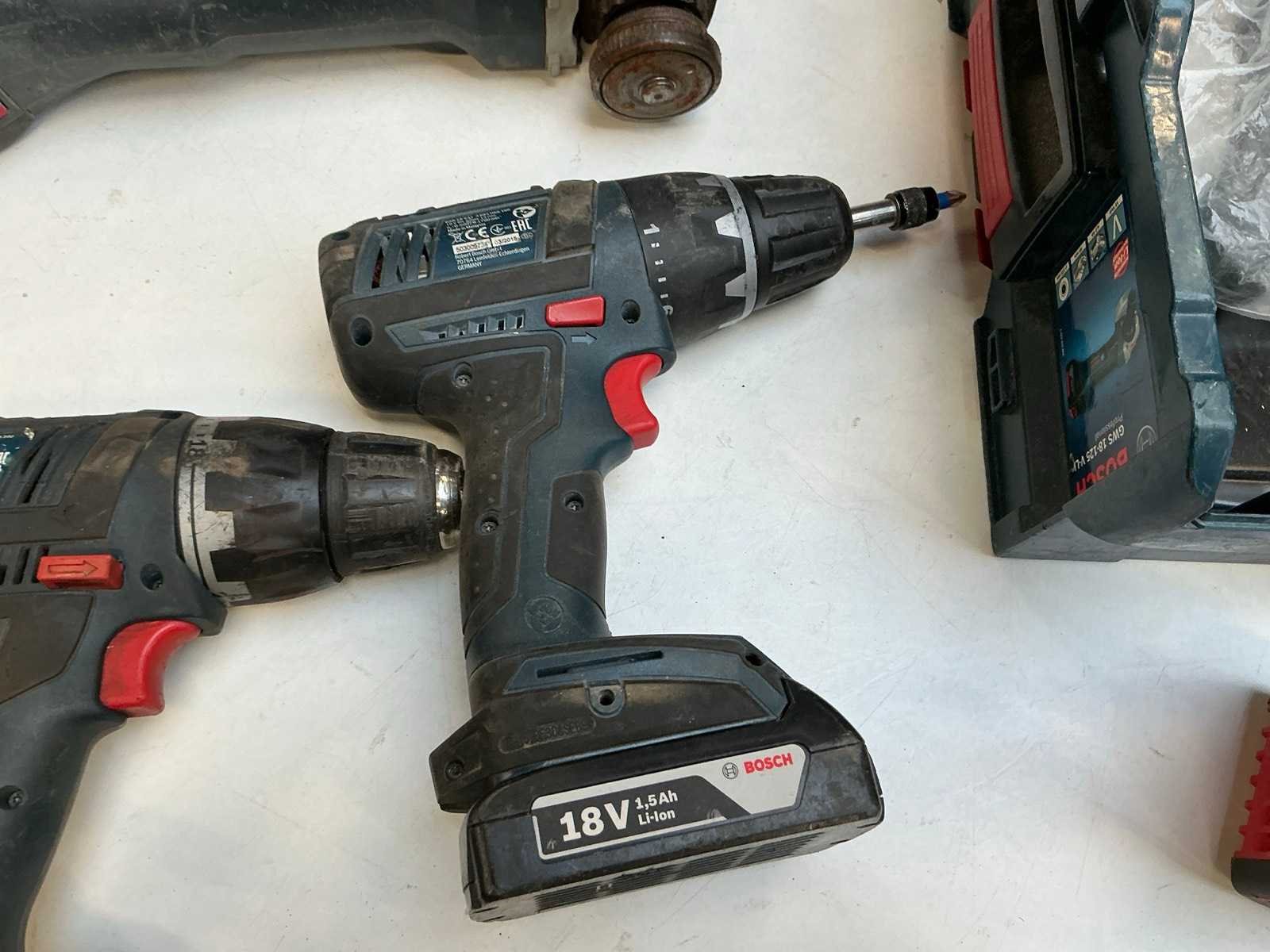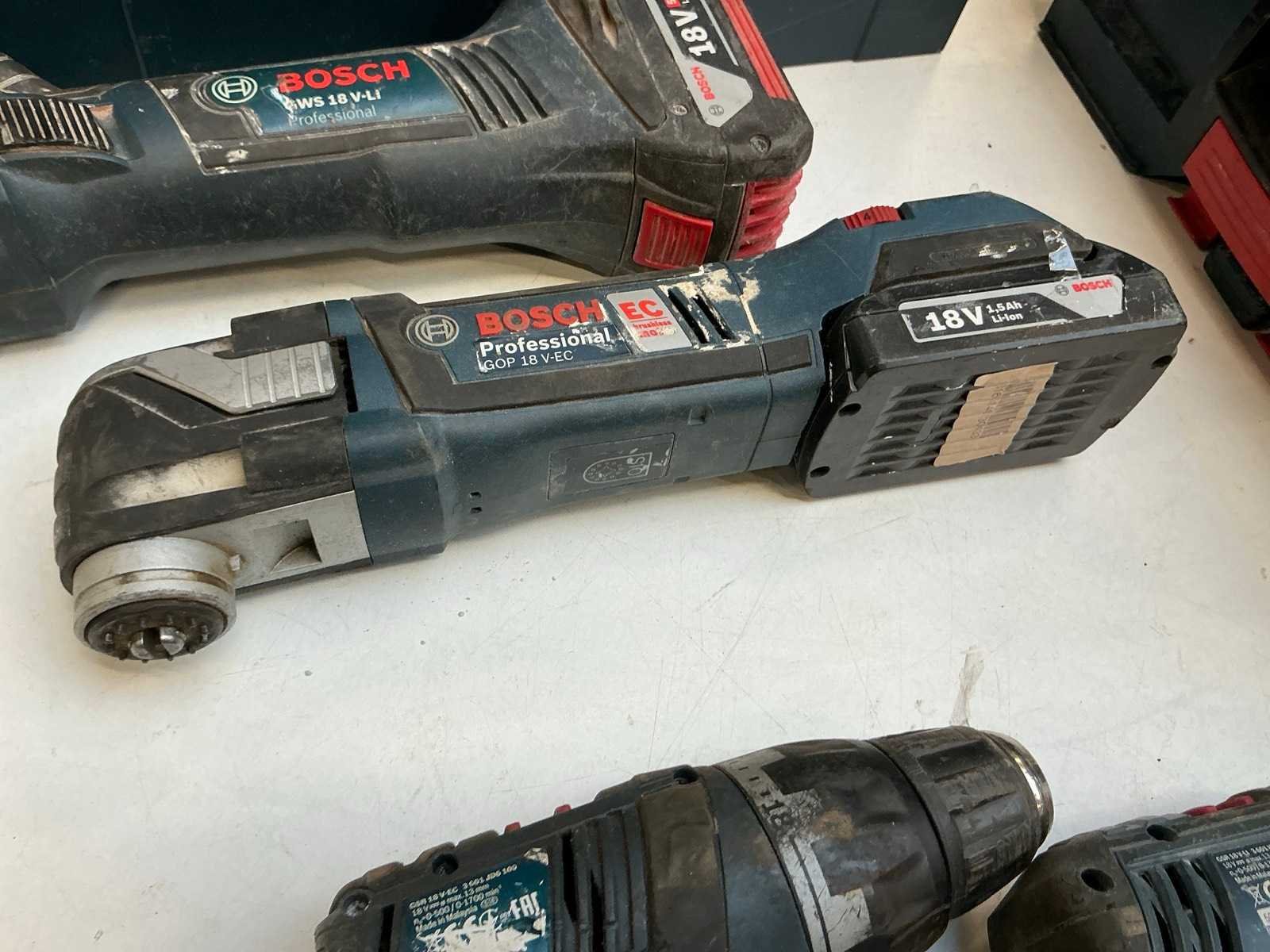 Zijnde: - GWS 18-125 V-Li haakse slijpmachine Ø125mm, met 2x18V-accu & lader, in koffer - Gereedschapsset bestaande uit: GSR 18 V-Li schroefboormachine (s/n 503009734), GSR 18 V-EC schroefboormachine, GWS 18 V-Li haakse slijpmachine (s/n 105001862) en GOP 18 V-EC multitool; telkens met 1x18V-accu; in totaal 1 lader; alles in 1 koffer Nee Merk: Bosch