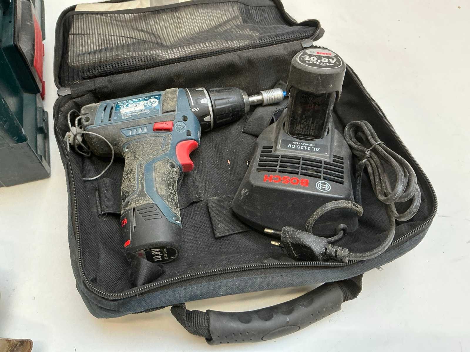 Zijnde: - GSR 10,8-2-LI schroefboormachine, met 2x10,8V-accu en lader, in koffer - GWS 18 V-LI haakse slijpmachine Ø125mm, met 1x18V-accu, geen lader, in koffer - GDR 14,4V-LI schroefmachine, met 2x14,4V-accu & GSR 18 V-EC schroefboormachine, met 1x18V-accu, s/n 61x005146; in totaal met 1 lader; samen in 1 koffer Nee Merk: Bosch