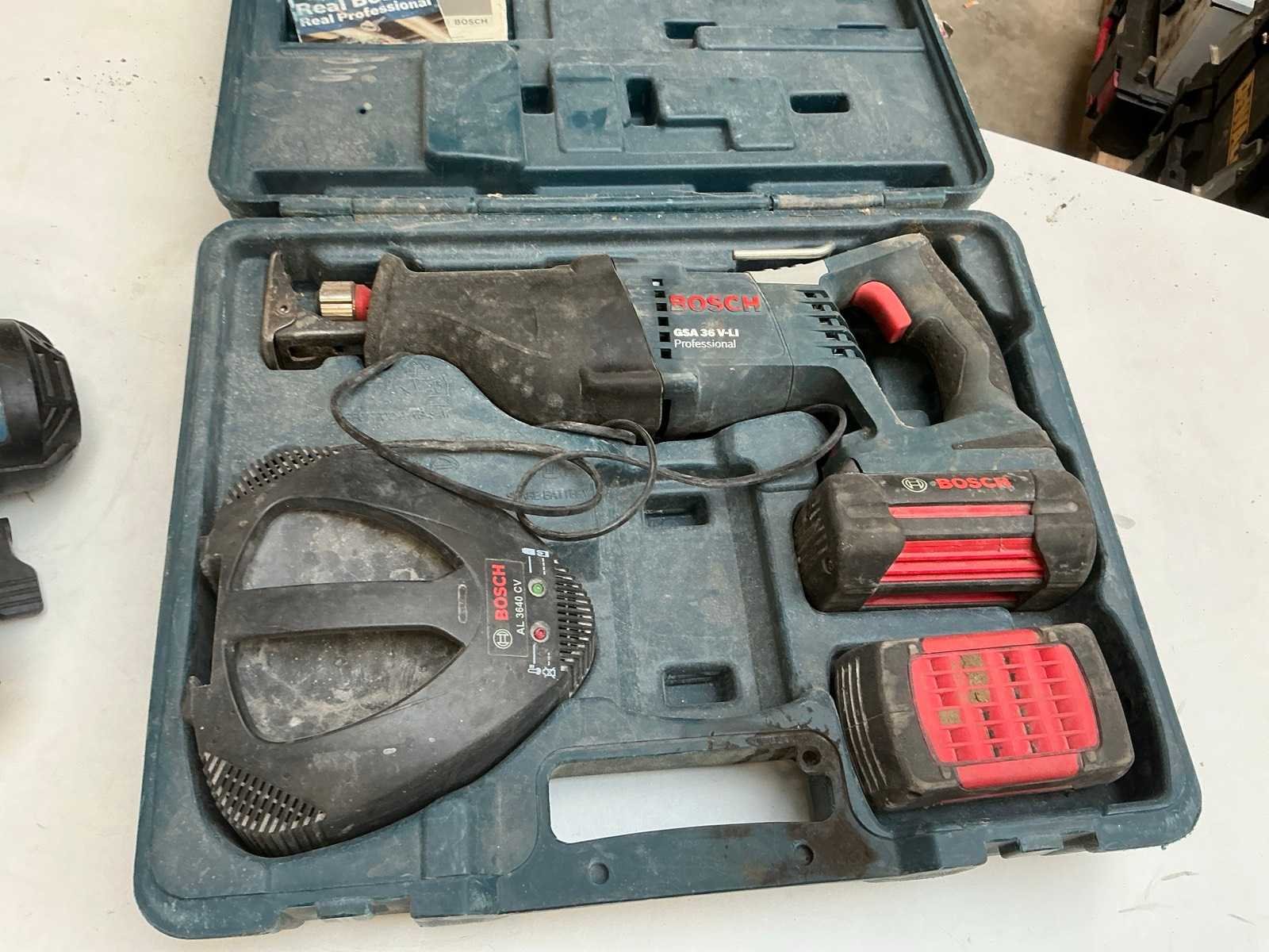 Zijnde: - GKS 18 V-LI cirkelzaag Ø165mm, met 1x18V-accu en lader, s/n 493000736 - GSA 36 V-LI reciprozaag, met 2x36V-accu en lader (Engelse stekker), s/n 504000117 Nee Merk: Bosch