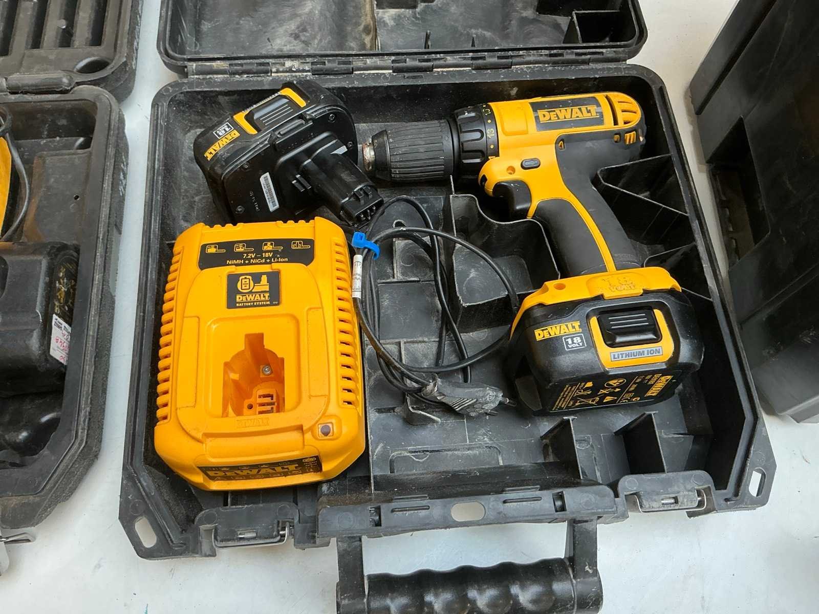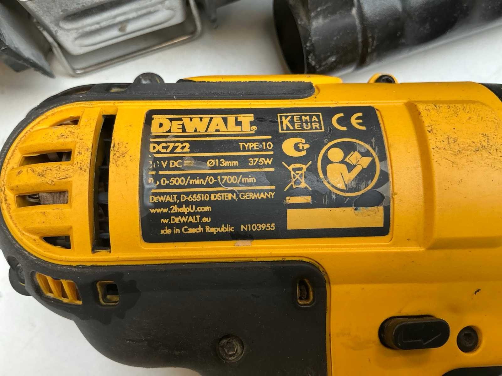 Zijnde: - DCS570 cirkelzaag Ø184mm, zonder accu/lader, s/n 032135 - DC722 schroefboormachine, met 2x18V-accu en lader, s/n 167462 - Haakse schroefmachine, met 1x12V-accu en lader, s/n 046191 Nee Met koffer: true