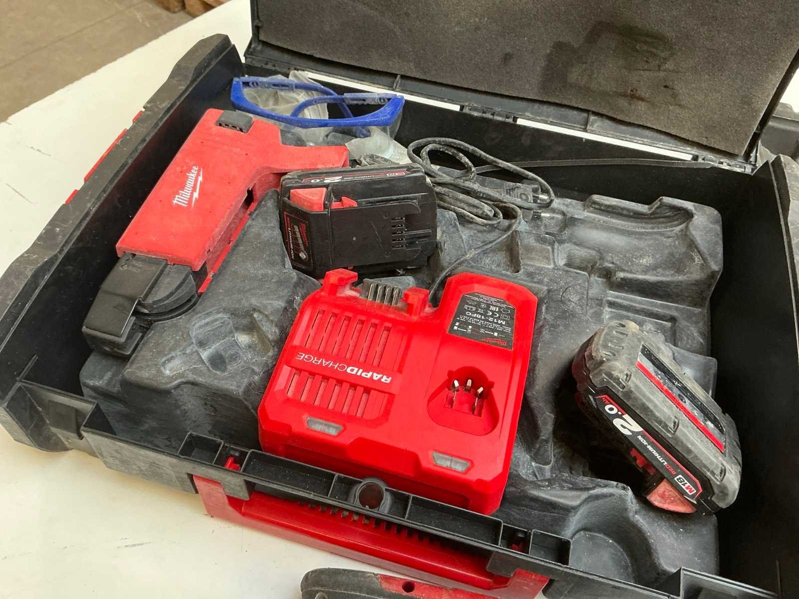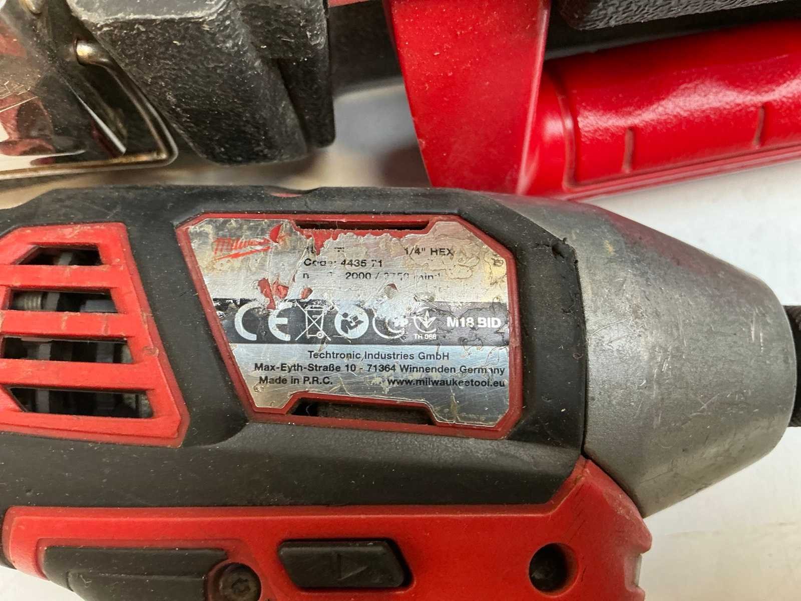 Zijnde: - V28 JSB decoupeerzaag, met 1x 28V-accu, geen lader, s/n 10535, in koffer - M18 FSG gipsplaat schroefmachine, met opzetstuk, met 2x 18V-accu en lader, in koffer - M18 BPD schroefboormachine, zonder accu en M18 BID schroefmachine, zonder accu; in totaal met 1 lader; samen in 1 koffer Nee Merk: Milwaukee