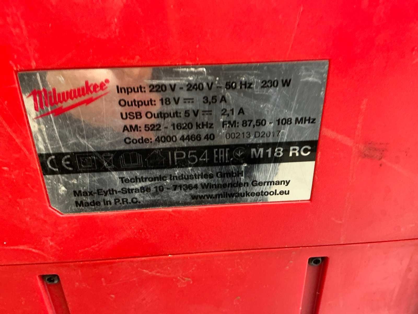 Met 1x18V-accu, geen lader, me5 230V-voedingskabel No Merk: Milwaukee Type: M18RC Serienummer: 00213D