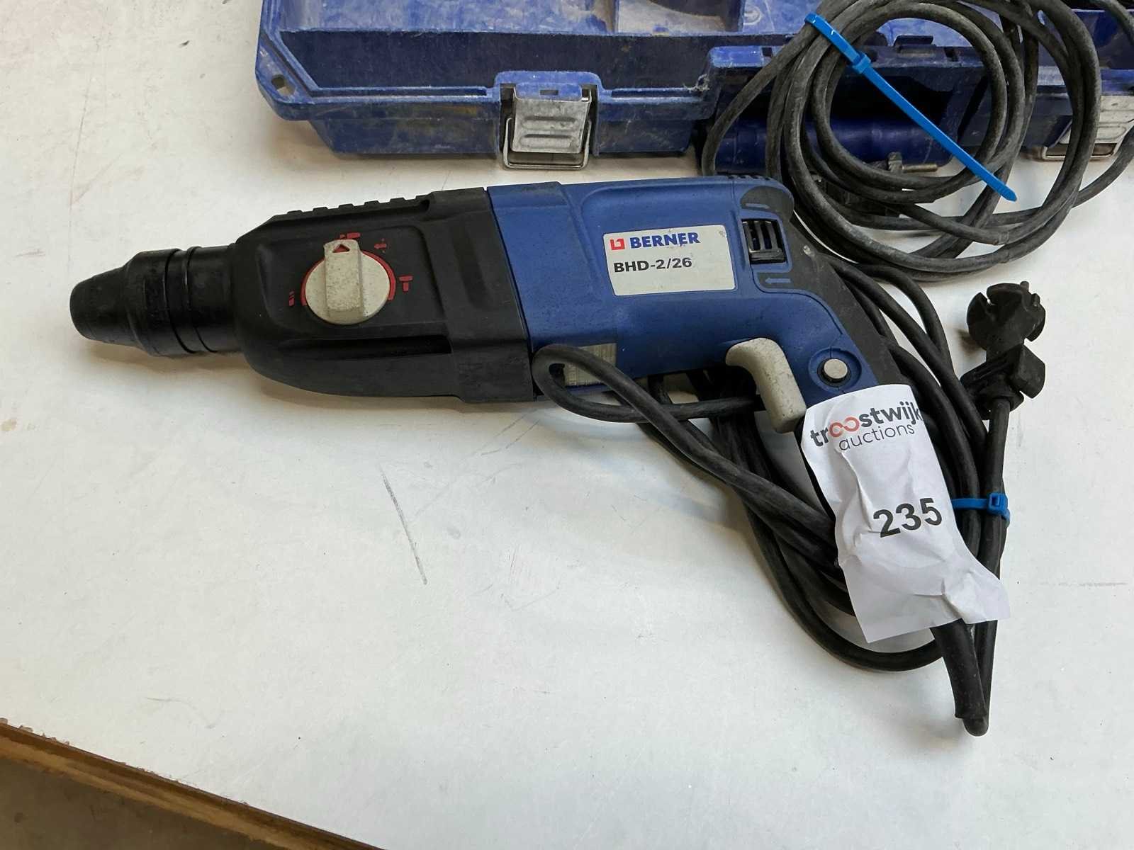 Zijnde: - BSS-1000 reciprozaag, s/n 2010 28-4 - BHD-2/26 klopboormachine, s/n 884000330 Nee Merk: Berner Aansluiting: 230V