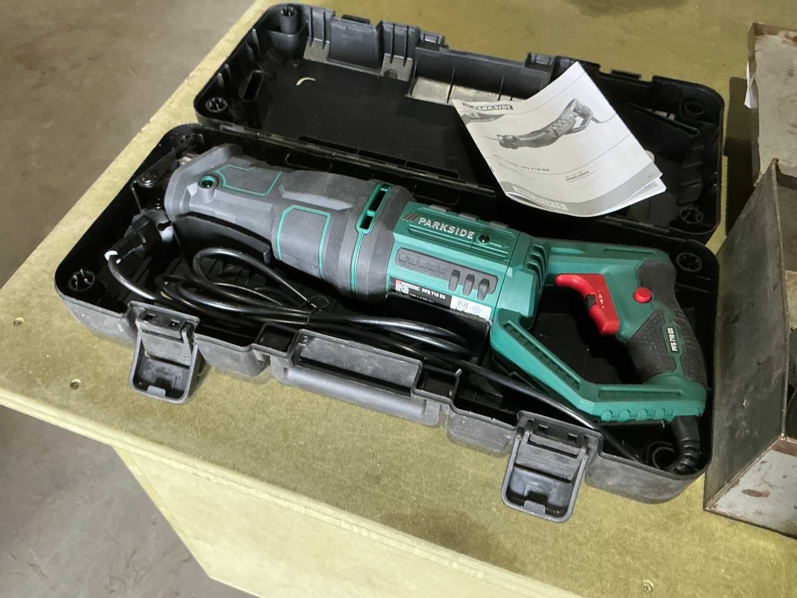 1x Parkside PFS 710 D3 reciprozaag, s/n 93970, 1x Würth WS125 haakse slijper, s/n 2927 & 1x BeA R60-664E accu-tacker, zonder accu/lader No Met koffer: true