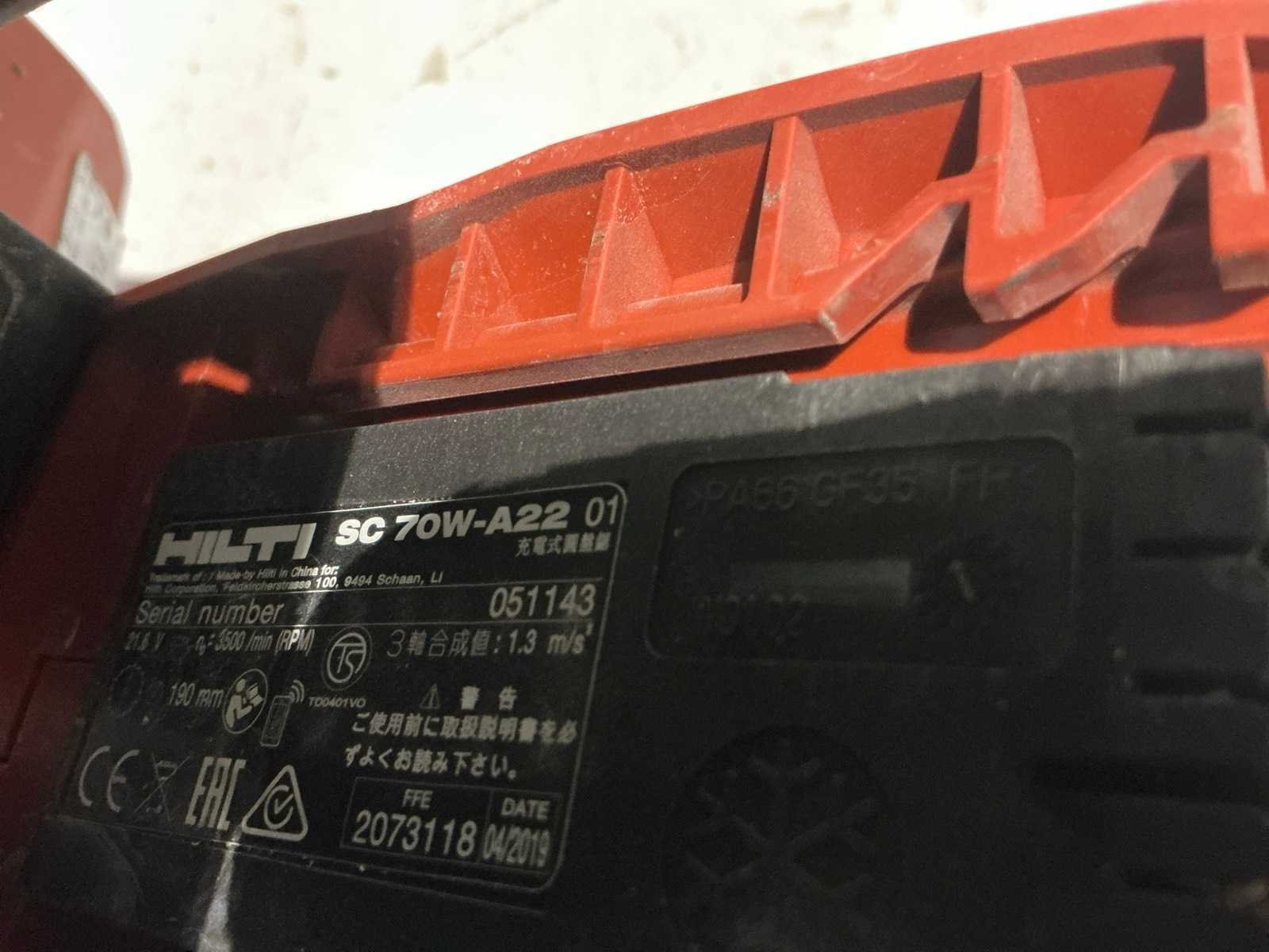 1x TE 6-A22 boorhamer, s/n 186658; 1x SC 70W-A22 cirkelzaag, Ø190mm, s/n 051143; in totaal,met 1x 21,6V-accu, geen lader Nee Merk: Hilti