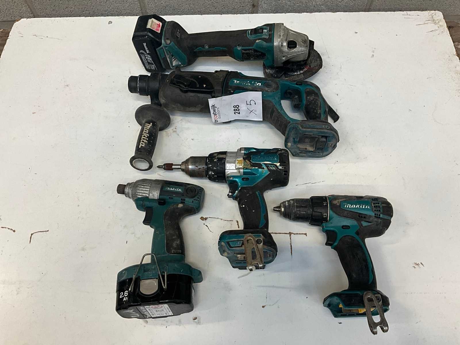 Bestaande uit: Accu haakse slijptol DGA504, voorzien van 3Ah accu, Accu klopboormachine BHR241 Accu slagschroevendraaier 6936FD voorzien van 2.6Ah accu Accu schroefboormachine DHP481 Accu schroefboormachine DDF456 met serienummer 2015 1280450 Nee Merk: Makita
