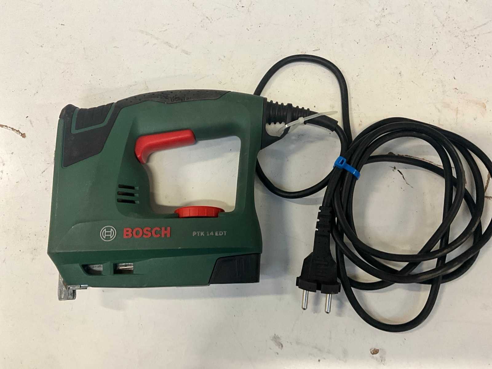 Bestaande uit: Nietmachine PTK 14 EDT met serienummer 701016948 Heteluchtpistool PHG 630-2 LCE haakse slijptol PWS 9-125 CE haakse slijptol GWS 750 met serienummer 607010202 Boormachine GSB 13 RE met serienummer 3 601 B17 107 Nee Merk: Bosch