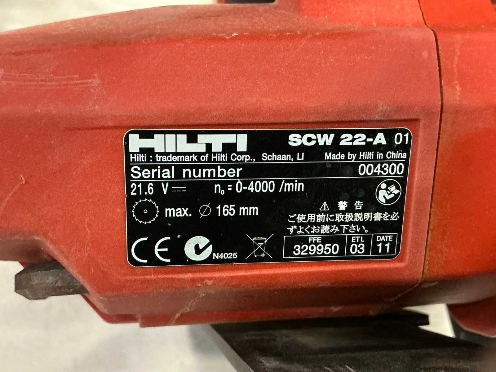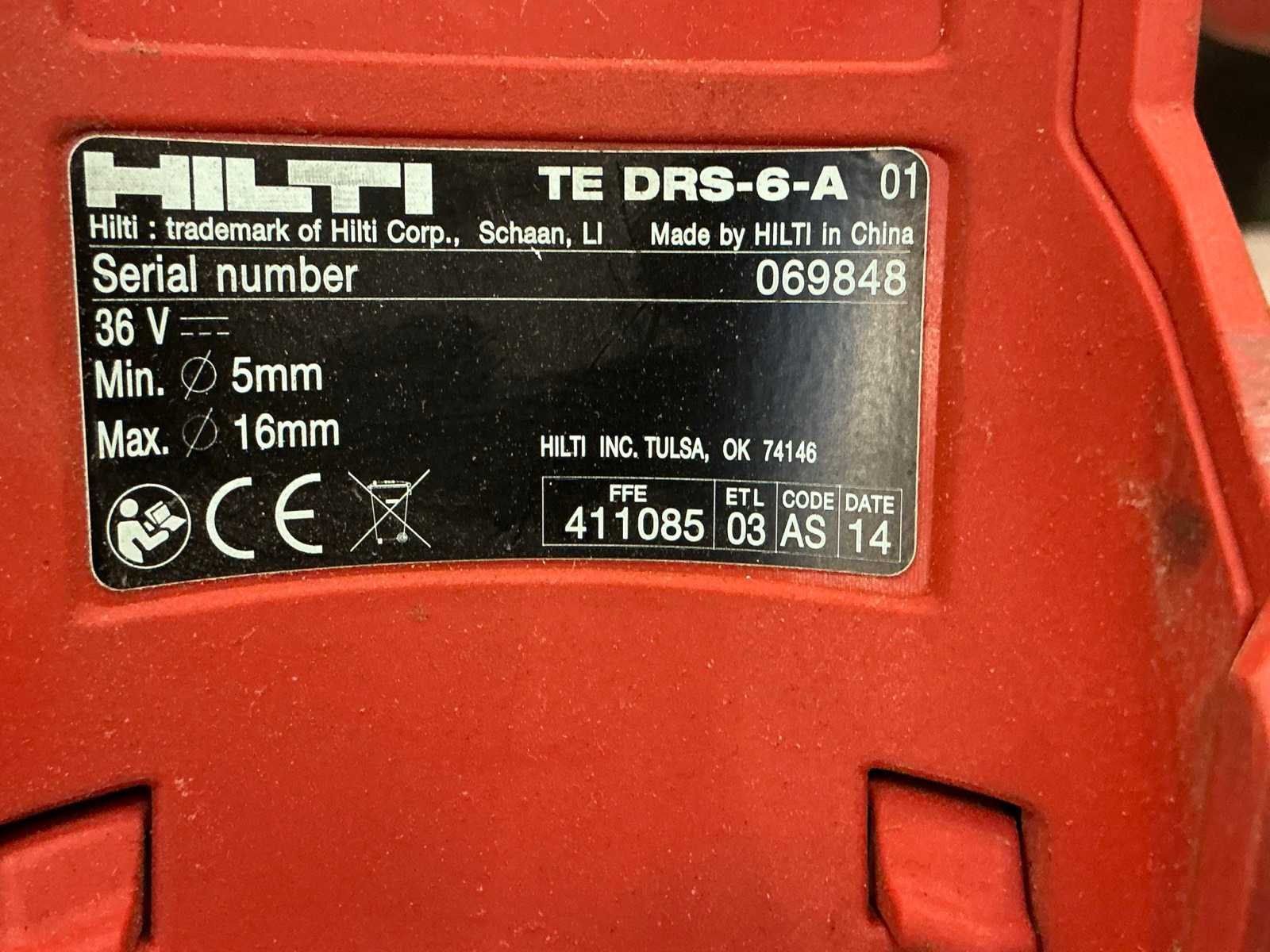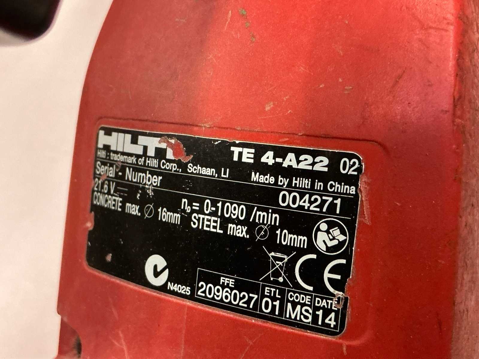 <Br> - Klopboormachine type TE 4-A22, met 1 accu, zonder acculader, S/N 004271. - Cirkelzaagmachine type SCW 22-A, zonder accu, zonder acculader, S/N 004300. - Schroefboormachine type SFC 22-A, zonder accu, zonder acculader, S/N 1252587. - Stofafzuigsysteem type TE DRS-6-A, S/N 069848. Nee Merk: Hilti