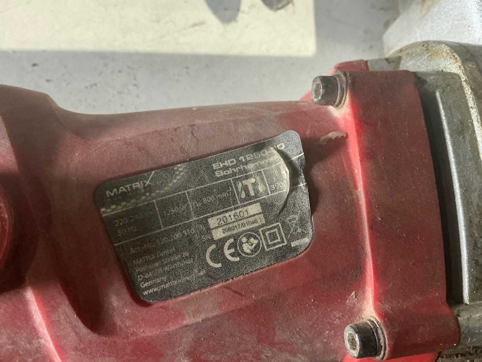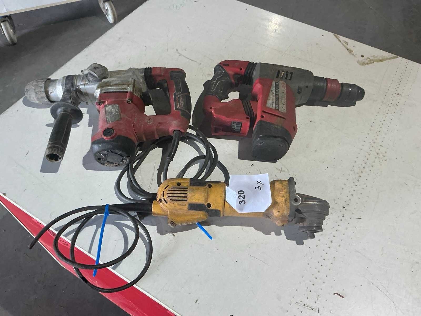 1x Milwaukee M18 CHPX accu-boorhamer, zonder accu/lader; 1x DeWalt D28183 elektrische haakse slijpmachine, Ø125mm, s/n 9149 (zonder stekker); 1x Matrix EHD1250-30 boorhamer, s/n 201601 Nee