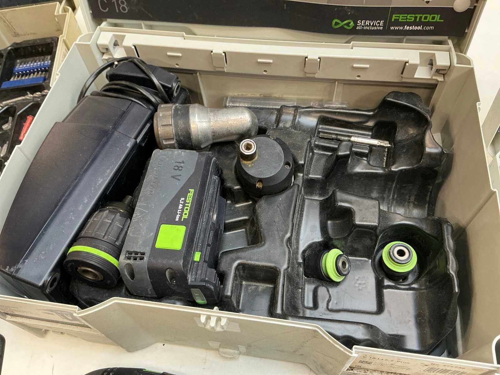 Zijnde: - CXS schroefboormachine, met 2x10,8V-accu & lader - C18 Li schroefboormachine, met 2x18V-accu & lader, s/n 40512877 Inclusief Festool SYS 1-CE Sort accessoires set Nee Merk: Festool Met koffer: true