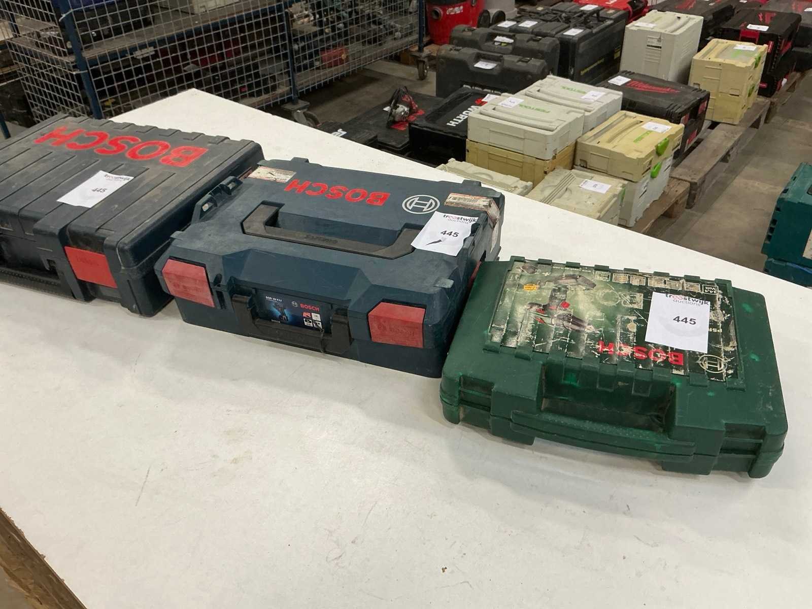 Zijnde: - GBH 36 V-LI klopboormachine, met 2x 36V-accu & lader, s/n 110000995 - GDR 28 V-LI schroefmachine, met 2x 18V-accu & lader, s/n 707004019 - PSR 14,4 LI-2 schroefboormachine, met 1x 14,4V-accu & lader, s/n 204233999 i Nee Merk: Bosch Met koffer: true