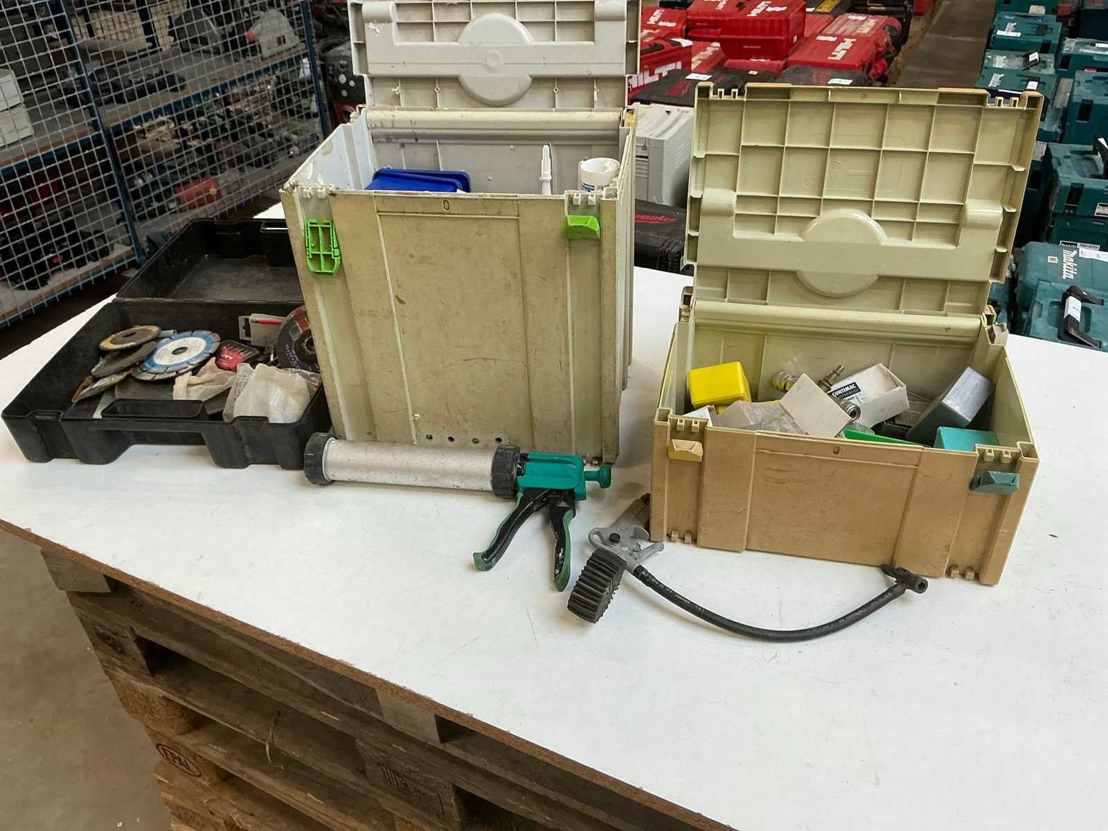 Diverse inhoud, waaronder kitpistool, drukmeter, nieten, silicones, … Nee Kunststof: true