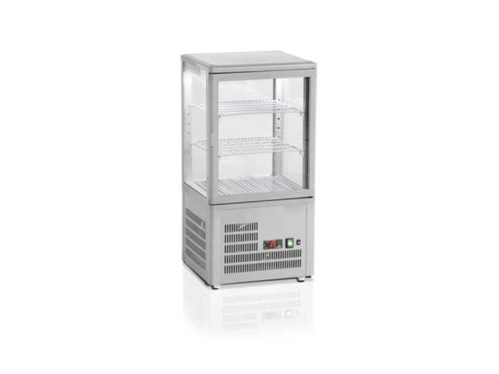 De kleine 58 L 4-zijdige glazen gekoelde vitrine van het merk Iceshop, referentie SC70G, is ontworpen om te voldoen aan de hoge eisen van de horecasector (cafés, hotels, restaurants). Deze compacte oplossing, met een capaciteit van 58 liter, biedt maximale zichtbaarheid voor de te bewaren en tentoongestelde producten, terwijl prestaties, voedselveiligheid en energie-soberheid worden gegarandeerd. Dankzij de vier glazen zijden is deze etalage ideaal om gebakjes, koude drankjes, desserts of sandwiches te tonen bij het verkooppunt of tijdens de receptie. Non Merk: IceShop Model: Petite vitrine réfrigérée 4 faces vitrées 58 L Gris Totaal netto inhoud: 58l Kleur: Grijs Lengte: 42.7cm Breedte: 38.4cm Hoogte: 85.5cm Materiaal: Roestvrij staal, acryl, polycarbonaat