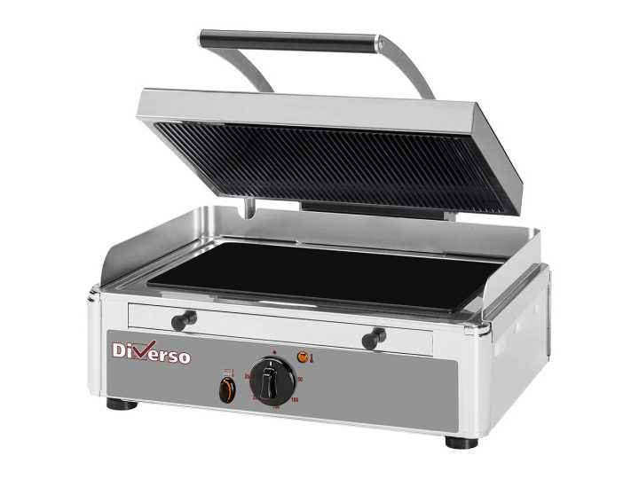 Optimaliseer je professionele keuken met de Diamond WR-MGVE-45 Medium Ceramic Glass Panini Grill. Wapen deze stevige grill, gemaakt van roestvrij staal en ontworpen voor intensief gebruik in de restaurantbranche. Met gladde geribde boven- en onderplaten garandeer je snelle verwarming en een laag energieverbruik. Praktische afmetingen (B 470 x D 445 x H 245 mm) en onderhoudsgemak voor een essentieel apparaat bij het bereiden van perfecte panini's. Non Merk: Diamond Model: Grill panini vitrocéramique moyen - Performance énergétique - WR-MGVE-45 - Diamond Gewicht: 17.5kg Lengte: 44.5cm Breedte: 47cm Hoogte: 24.5cm Materiaal: AISI 304 roestvrijstalen frame