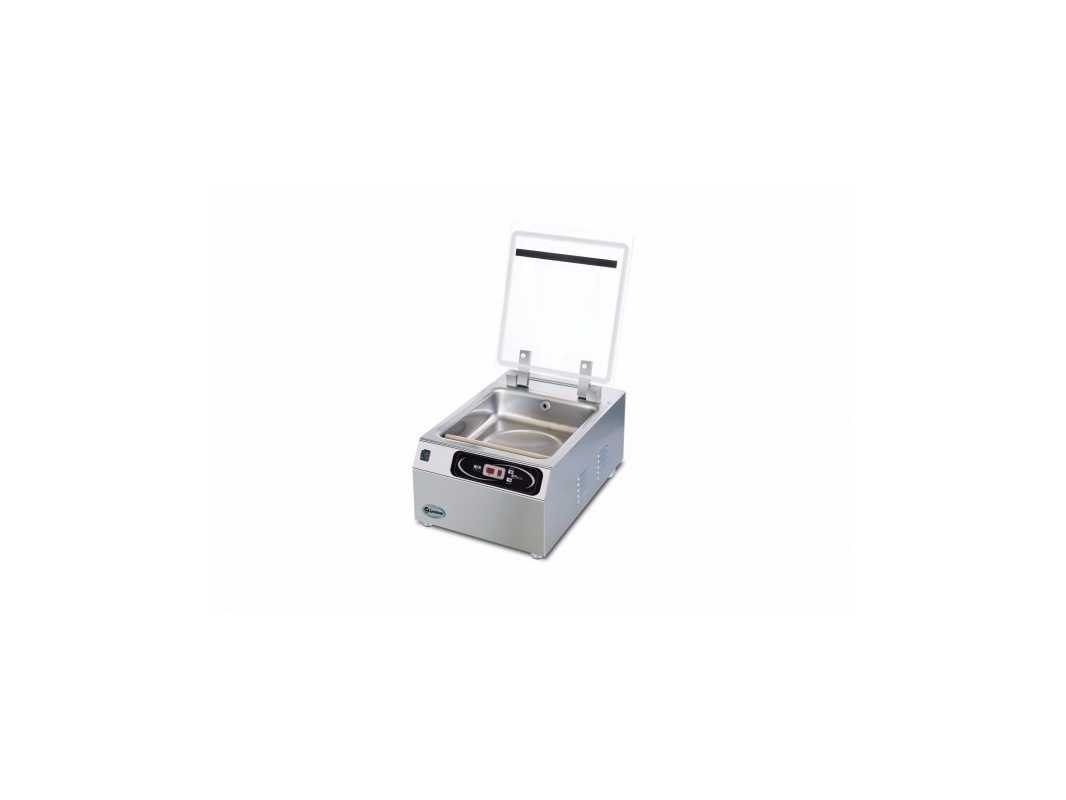 Roestvrijstalen productie - Semi-automatisch model (druk op de Start/Stop-knop) om de cyclus te starten. - Handmatige dekselopening op. - Mogelijkheid om buiten te stofzuigen met geperste zakken. - Mogelijkheid tot stofzuigen in roestvrijstalen gastro-trays. - Dubbel lassen Non Merk: Lavezzini Type: Machines sous vide Aansluiting: 230V Eigen gewicht: 32kg Totale afmeting L: 370mm Totale afmeting Breedte: 530mm Totale afmeting Hoogte: 270mm