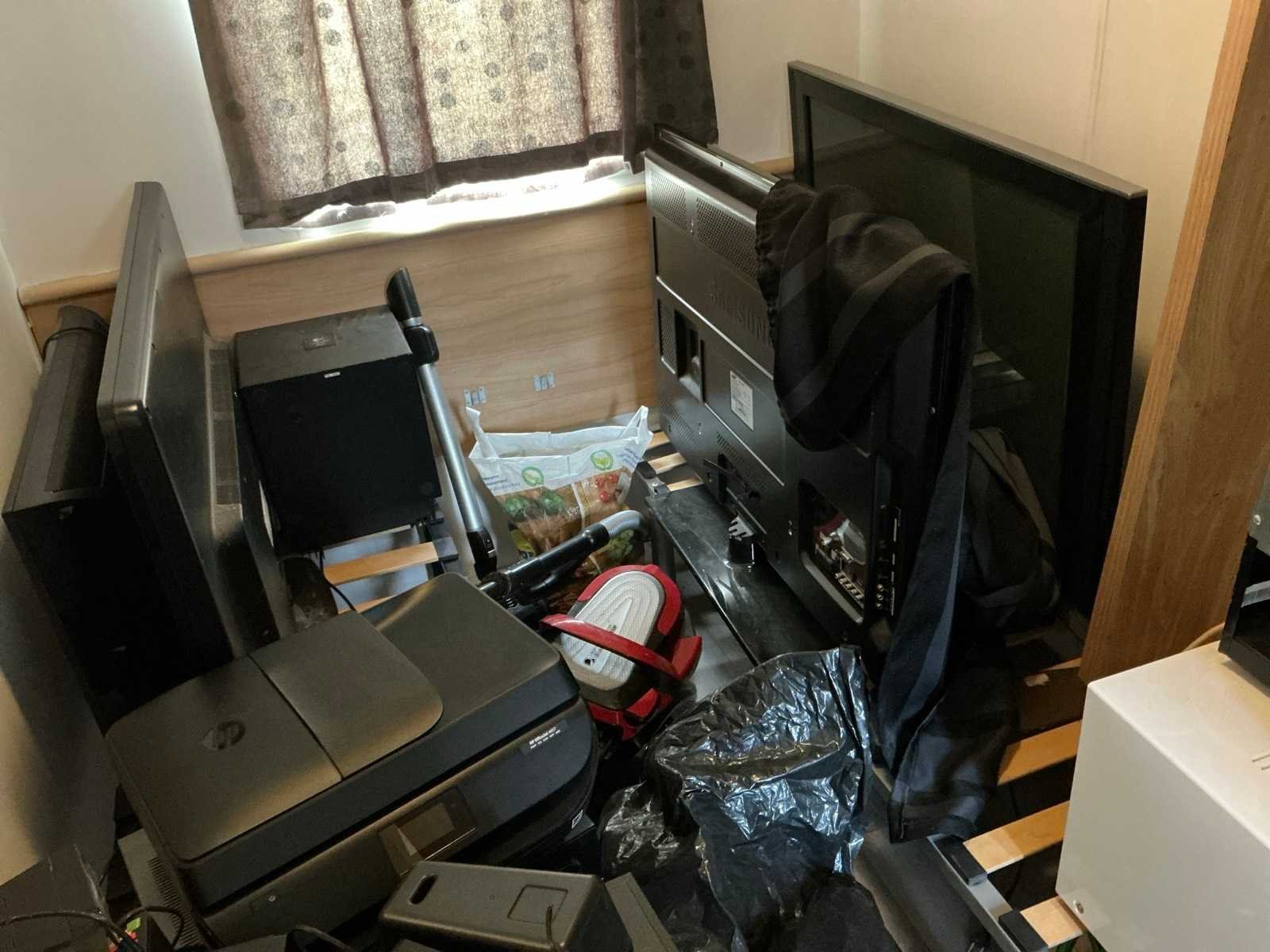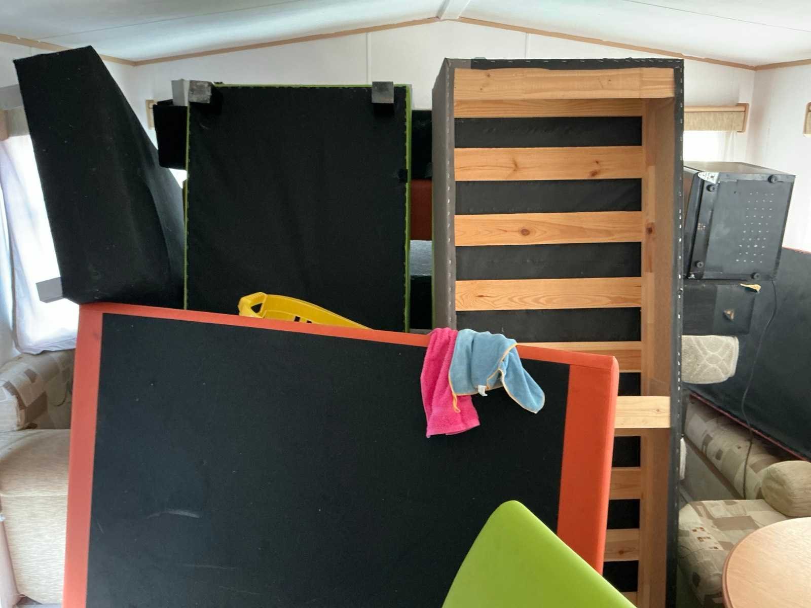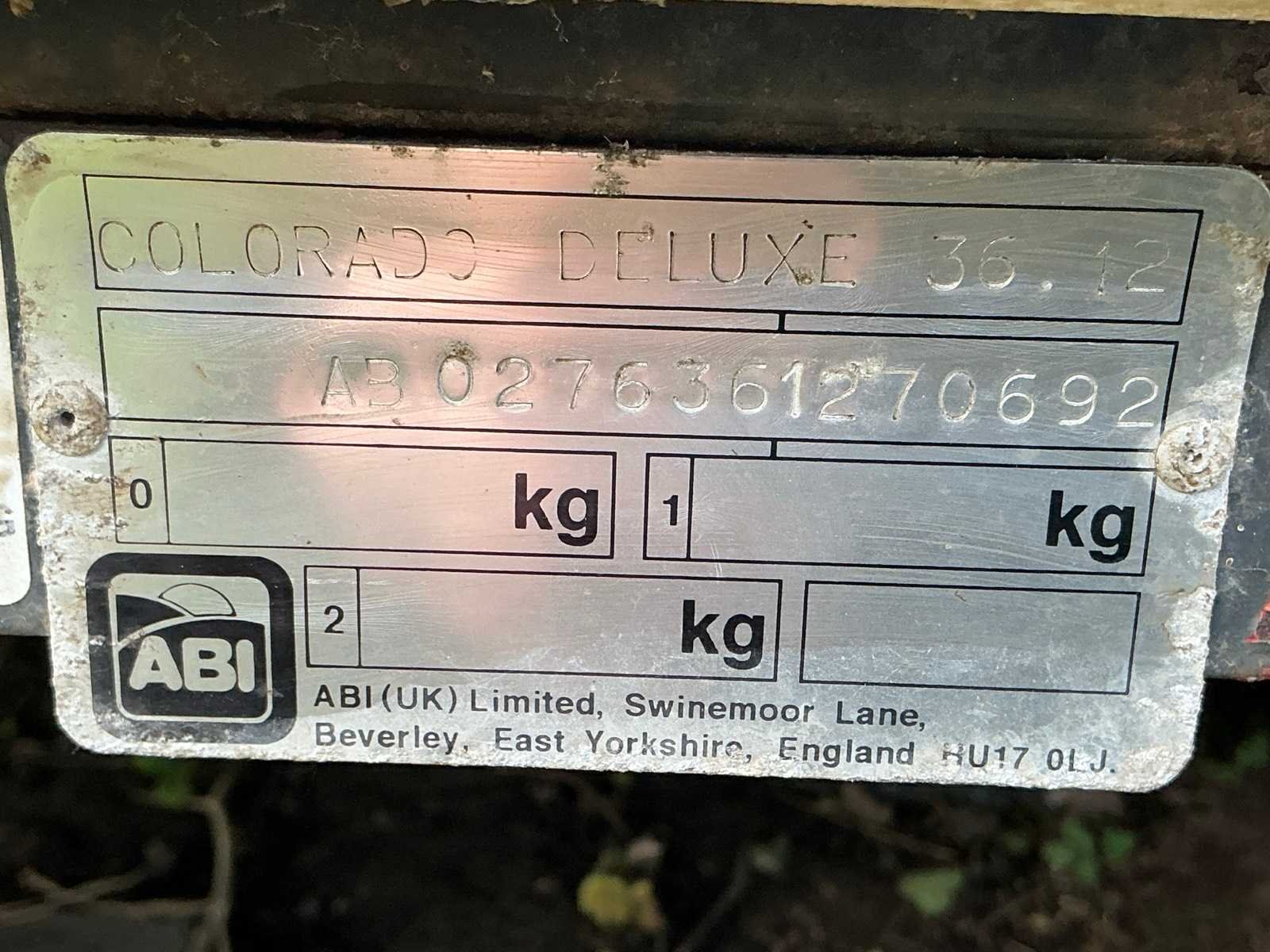 Voorzien van 2 deuren en 9 ramen, Ingerichte keuken voorzien van 4-pits gasfornuis ENIGMA, microgolfoven QUIGG, koelkast THOMSON. 1 slaapkamer voorzien van 2-persoonsbed en 3 diverse ingebouwde kasten. 1 badkamer voorzien van douche, lavabo en toilet. 1 verwarmingsbuizen inhoudende 1 gasboiler MORCO D-61B, 1 leefruimte voorzien van stoffen zitbanken, 1 ingebouwde kantoorhoek voorzien van gaskachel, 1 bijverwarming TOSAÏ 360A, 1 22” monitor SAMSUNG en 1 DVD-speler HARMAN/KARDON. Leefruimte inhoudende gedemonteerde zithoek en diverse zitbanken, 1 minibar koelkast INTERTEK CR-40 A, 1 houten ronde tafel dia 92cm en 2 1-persoonsmatrassen. 1 bergruimte inhoudende partij diverse electro waaronder 4 diverse televisietoestellen waaronder 42” SAMSUNG plasma display en PHILIPS, 1 All-In-One printer HP OfficeJet 4657, 1 luidspreker LOGITECH THX Subwoofer, 1 luidspreker TRUST Subwoofer voorzien van 2 satelliet luidsprekers OXT, 1 elektrische bijverwarming SENCYS 3.3 kW, 1 satellietontvanger VIZYON, 2 diverse routers waaronder getekend PROXIMUS en MOBISTAR, 1 microgolfoven, 1 draagbare lucht compressor TOPCRAFT TCK-181, 1 stofzuiger ROWENTA, 1 minibar koelkast INTERTEK CR-40 A en 2 eenpersoons lattenbodems voorzien van metalen frame zonder matras. Inhoud bergruimte onder voorlopige toewijzing, mogelijks eigendom derden. No Merk: ABI Model: Colorado Deluxe 36.12 Product type: Sta Chassisnummer: AB0276361270692 Aantal sleutels: 6 Kleur: Beige Lengte: 1101cm Breedte: 369cm Hoogte: 325cm Zelf rijdend exporteren: Niet mogelijk