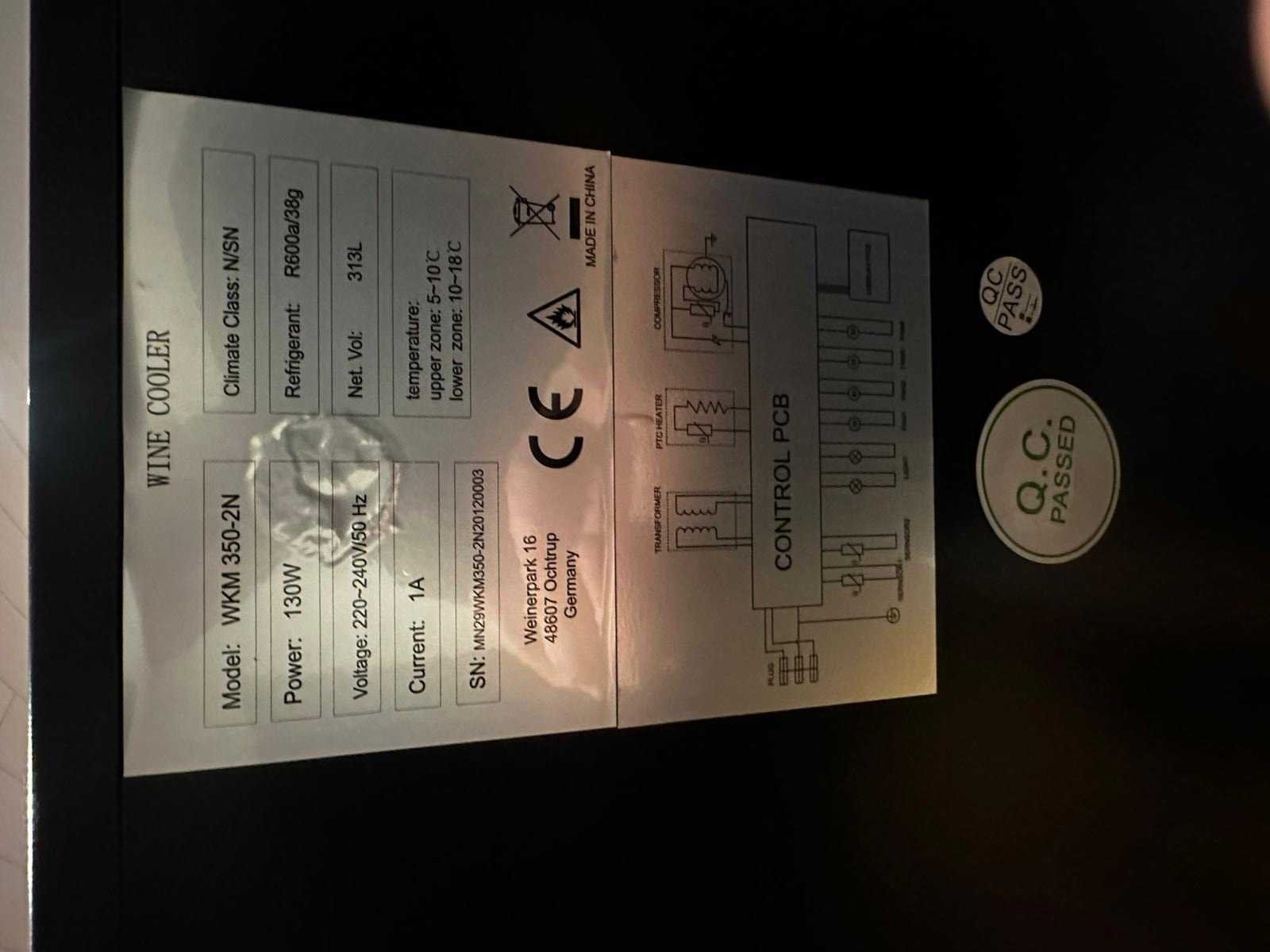 2 zones regelbaar No Merk: SKU Type: WKM 350-2N Lengte: 595 Hoogte: 1397 Breedte: 680 Capaciteit flessen: 116 Temperatuurbereik min.: 5°c Regelbare thermostaat: true Vrijstaand: true Temperatuurbereik max.: 18°c