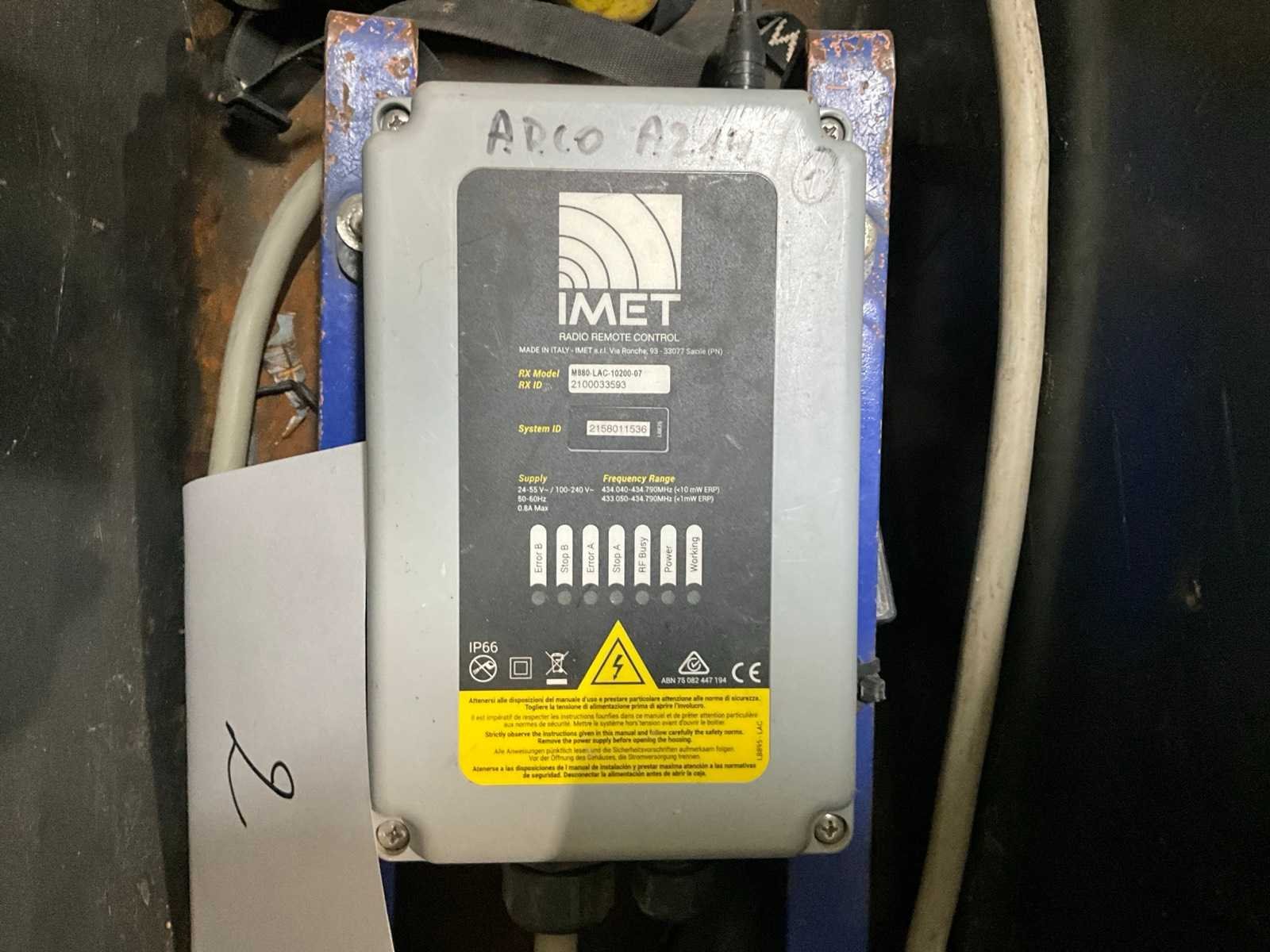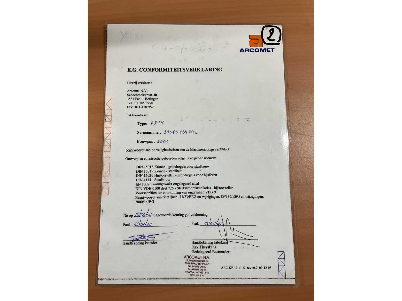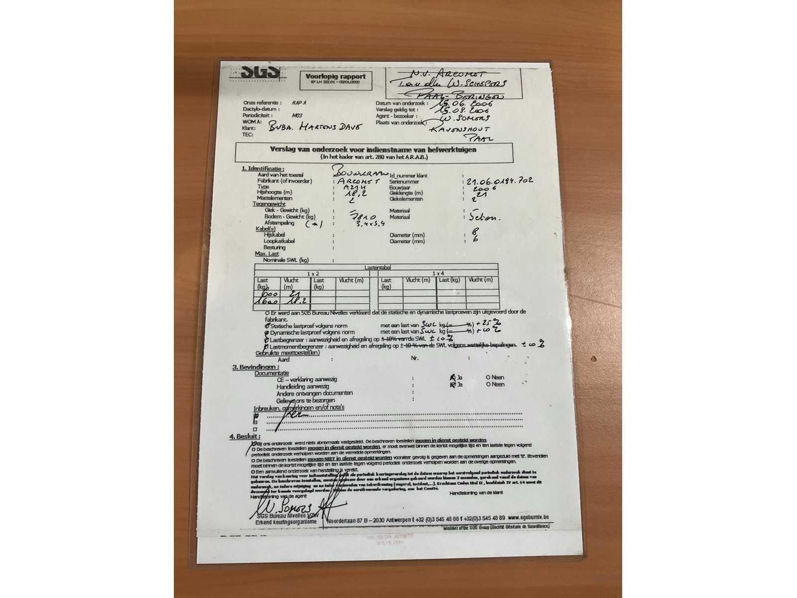 • afmetingen grondopstelling: • ballast: 7810kg, zijnde 1x 2000kg en 7x830kg • transportwielen: aanwezig • gebruikssporen Nee Merk: Arcomet Type: HA21 Bouwjaar: 2006 Serienummer: 21060194702 Met radiografische afstandsbediening: true