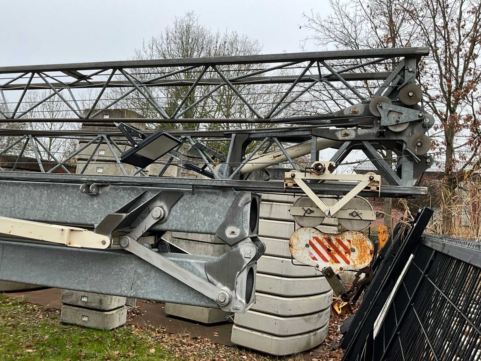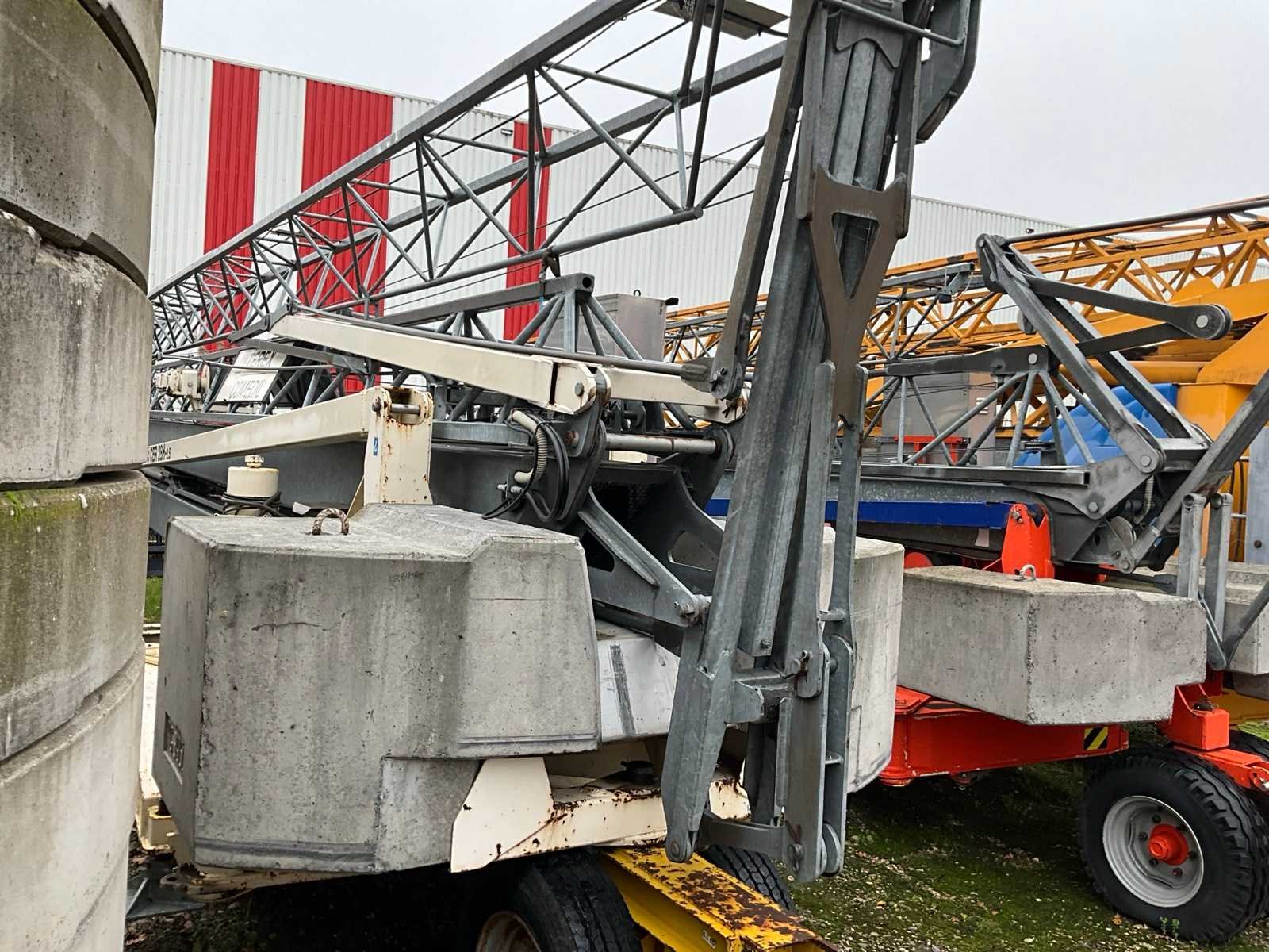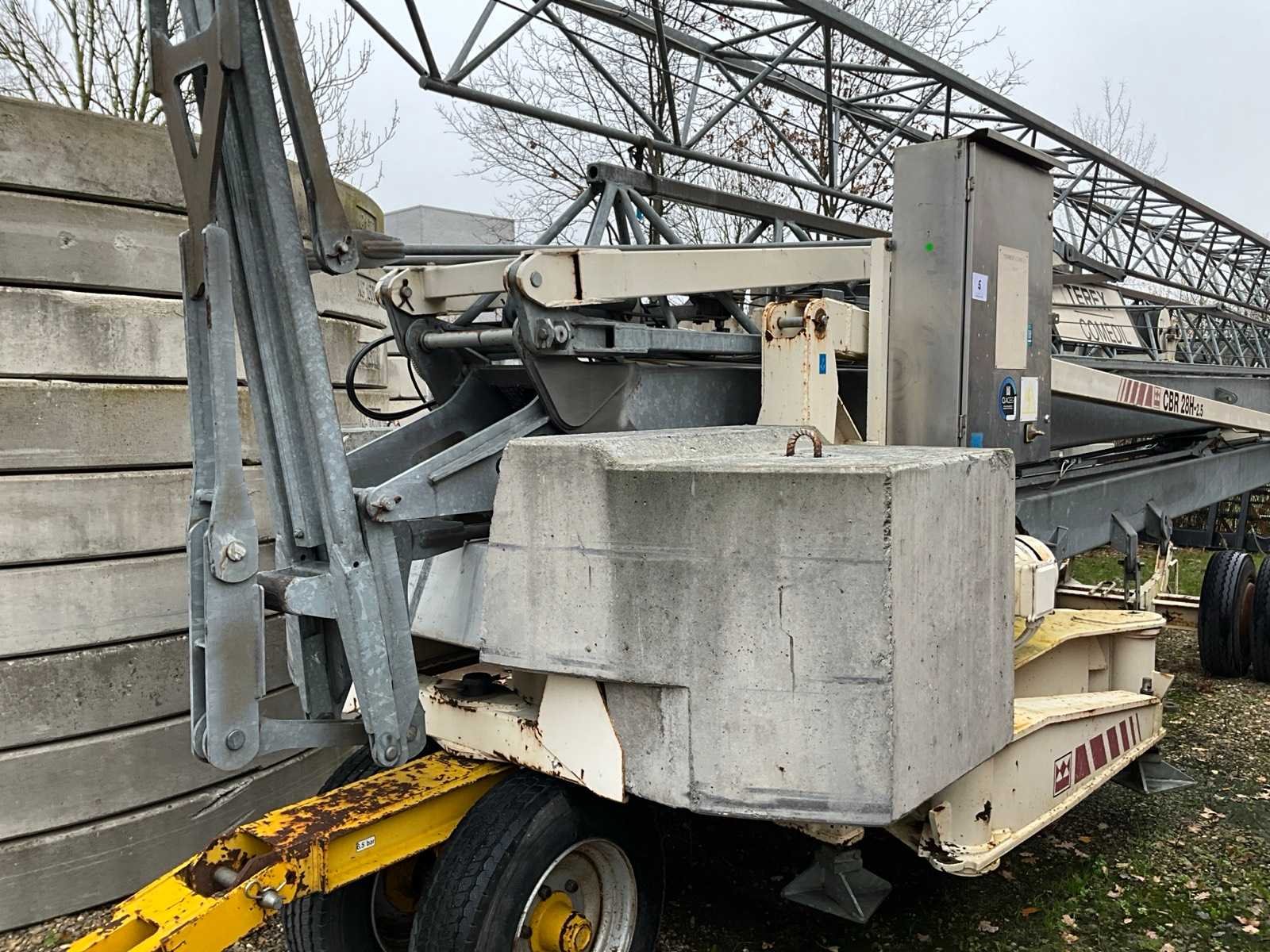 • afmetingen grondopstelling: 3800x3800mm • ballast: 17000kg, zijnde moederblok en 12x940kg, • vermogen: 8,8Kw • transportwielen: aanwezig • gebruikssporen Nee Merk: Terex/Comedil Type: CBR 28H-2.5 Bouwjaar: 2007 Serienummer: G6307004 Max. hijscapaciteit: 2500kg Gieklengte: 28m Max. haakhoogte: 21.5m Met radiografische afstandsbediening: true