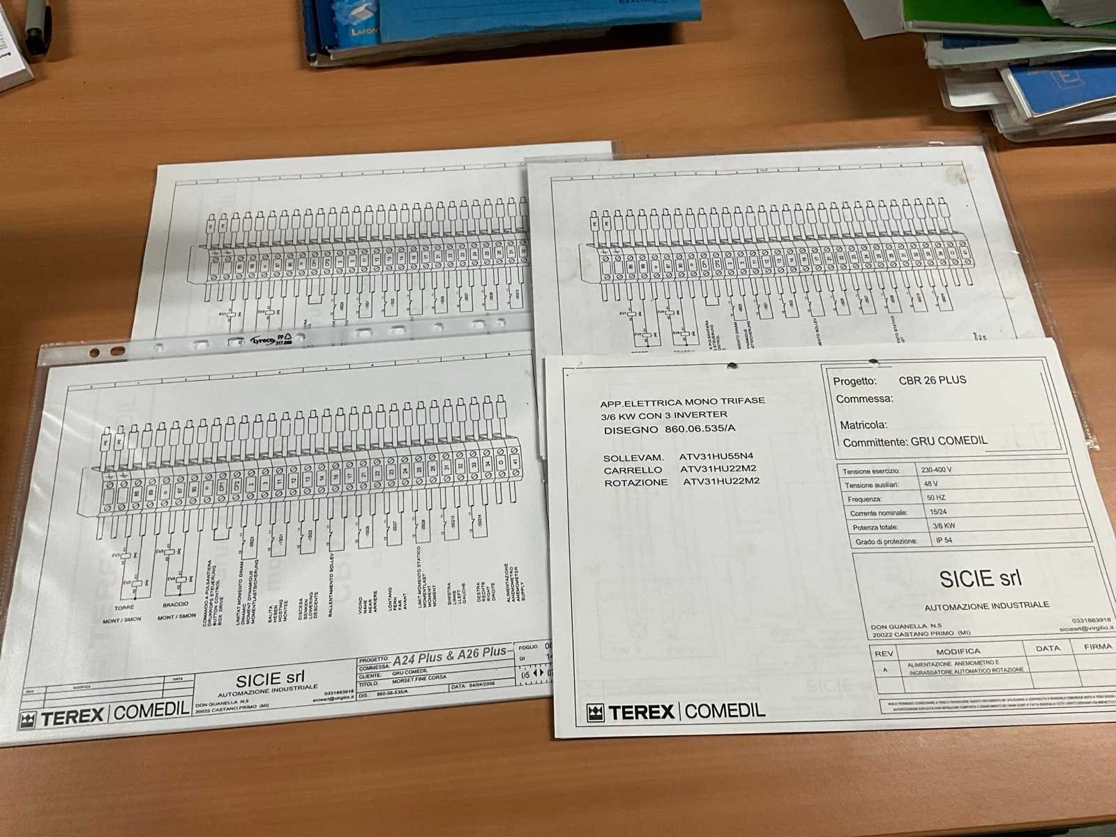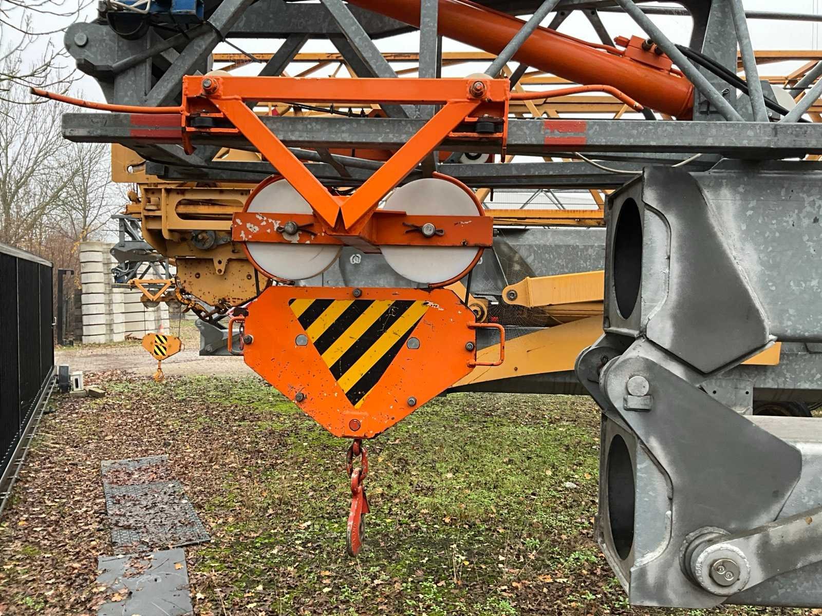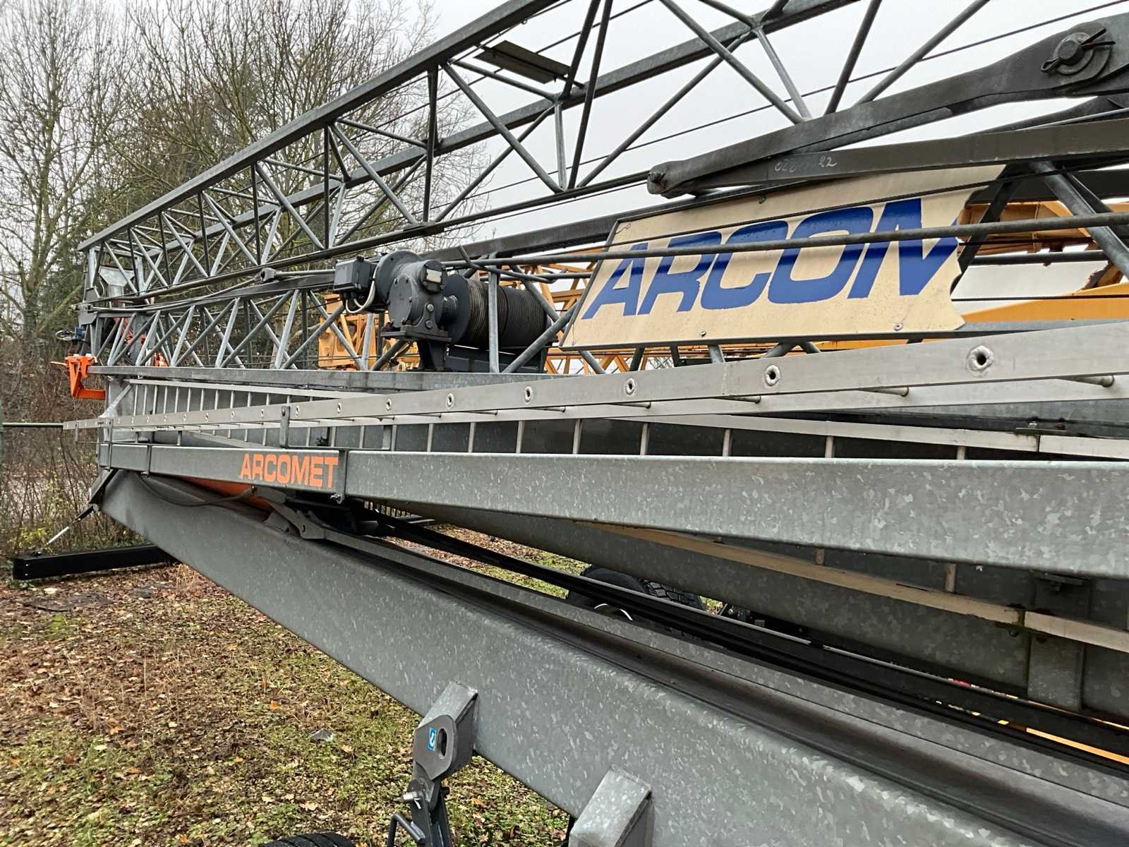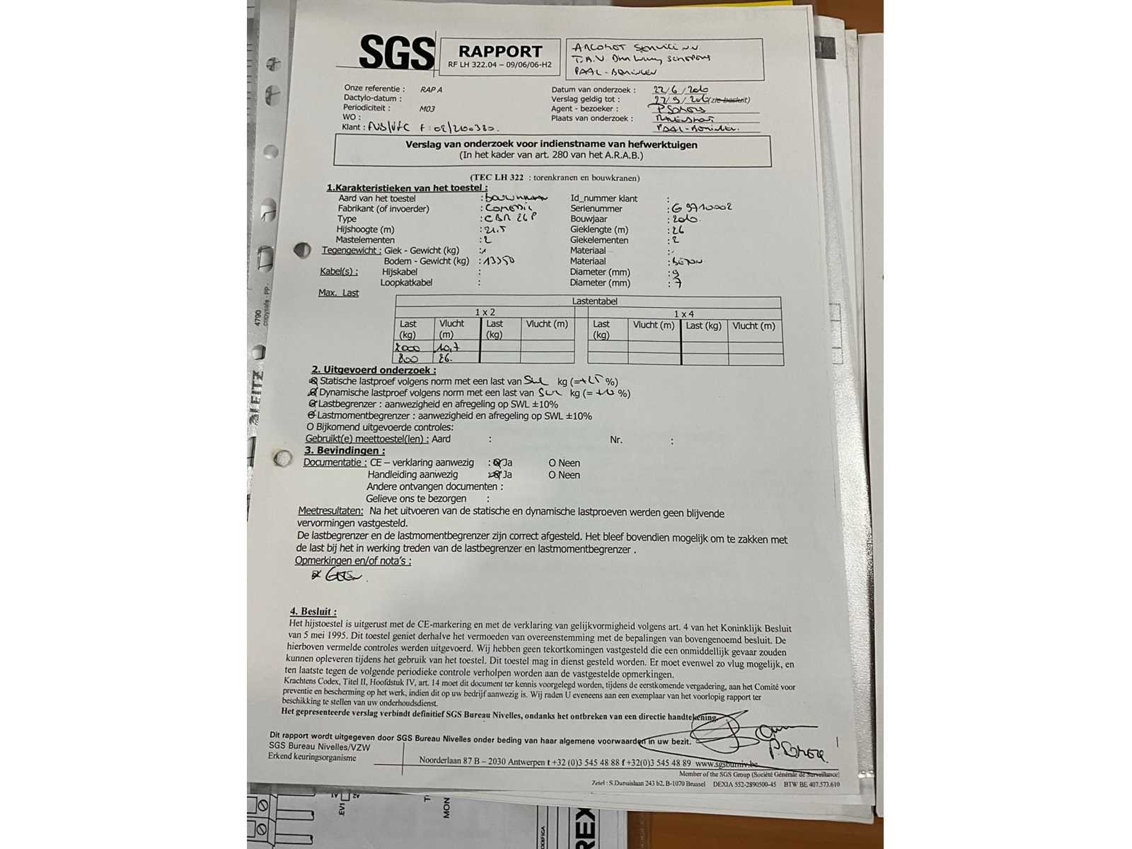 • afmetingen grondopstelling: 3800x3800mm • ballast: 13350kg, zijnde moederblok en 10x 940kg • vermogen: 5,5 • transportwielen: aanwezig • gebruikssporen, lekke band Nee Merk: Terex Type: CBR26 Plus Bouwjaar: 2010 Serienummer: G9710002 Max. hijscapaciteit: 2000kg Gieklengte: 26m Max. haakhoogte: 21.5m Met radiografische afstandsbediening: true Eigen gewicht: 8200kg