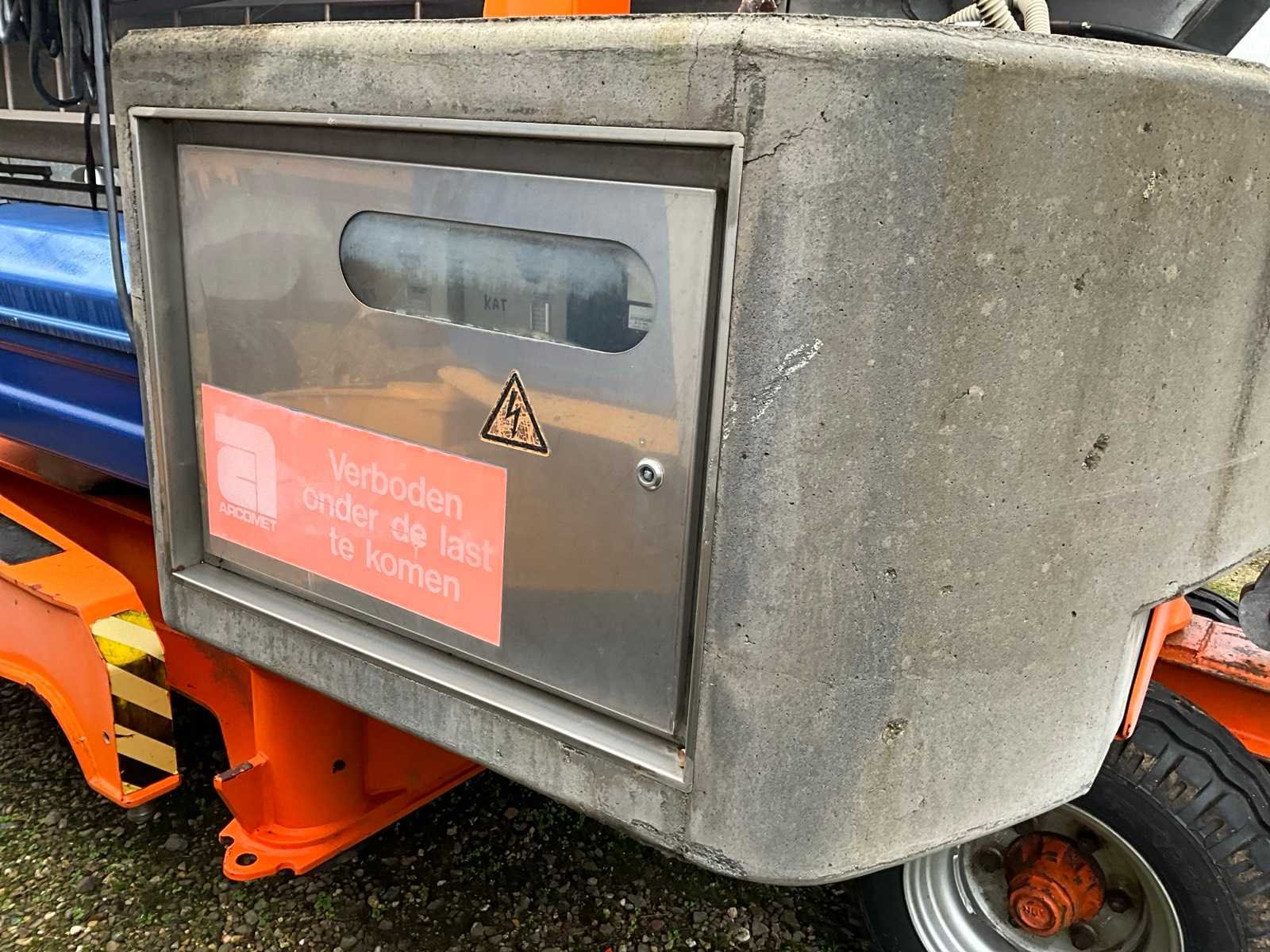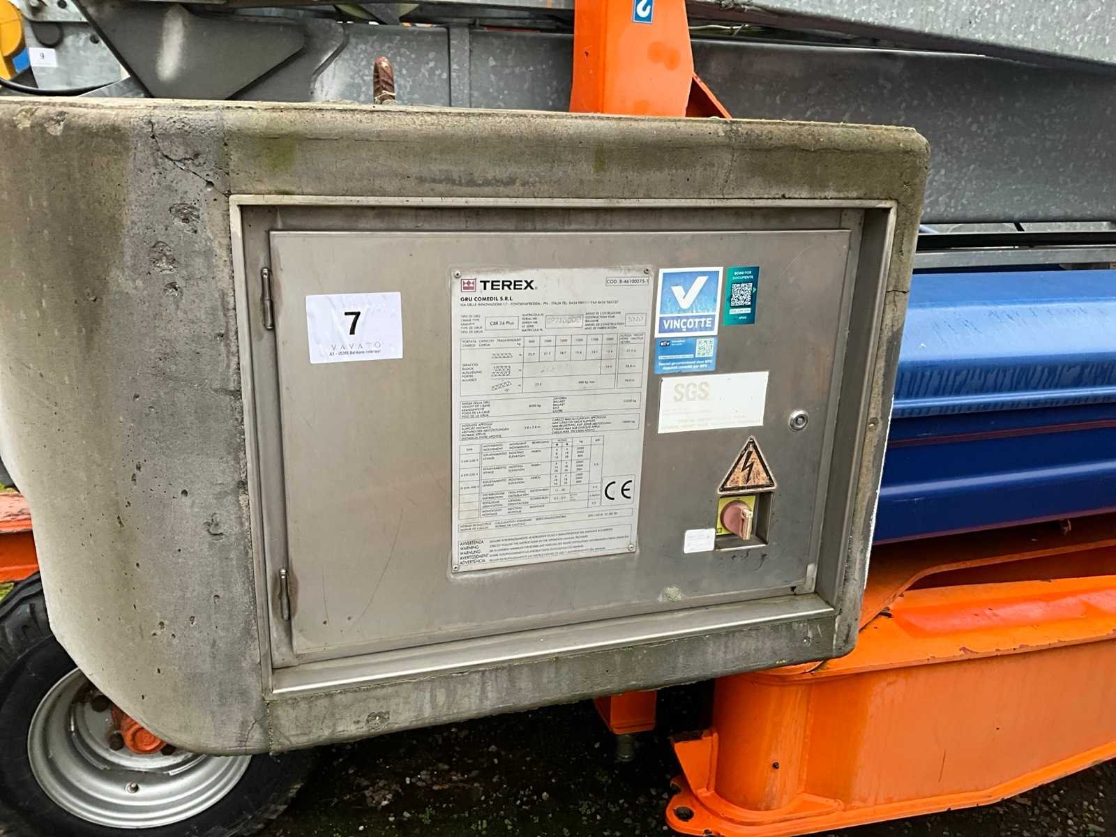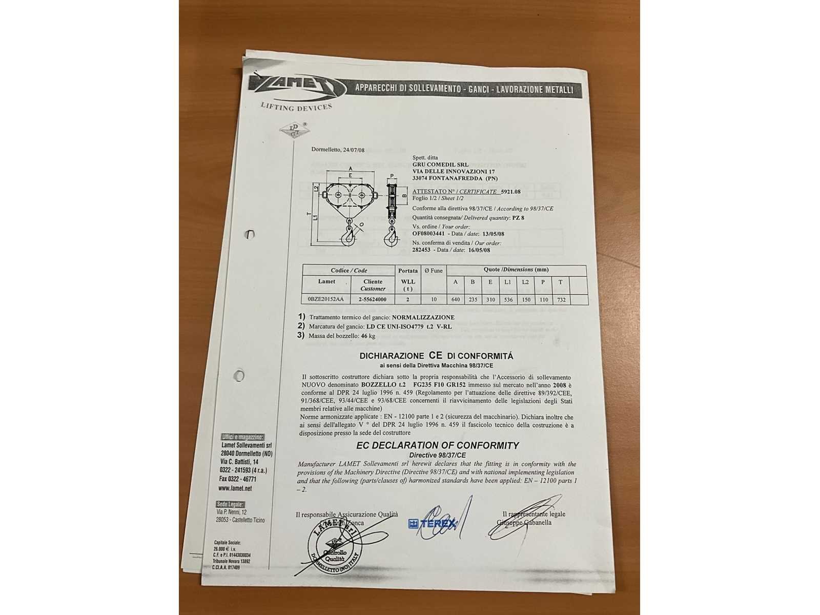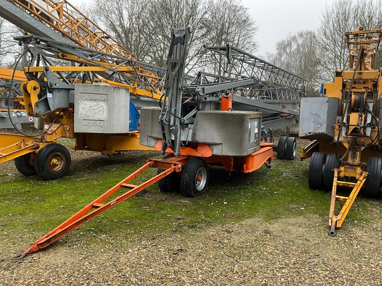 • afmetingen grondopstelling: 3800x3800mm • ballast: 13350kg, zijnde moederblok en 10x 940kg • vermogen: 5,5 • transportwielen: aanwezig • gebruikssporen, lekke band Nee Merk: Terex Type: CBR26 Plus Bouwjaar: 2010 Serienummer: G9710002 Max. hijscapaciteit: 2000kg Gieklengte: 26m Max. haakhoogte: 21.5m Met radiografische afstandsbediening: true Eigen gewicht: 8200kg
