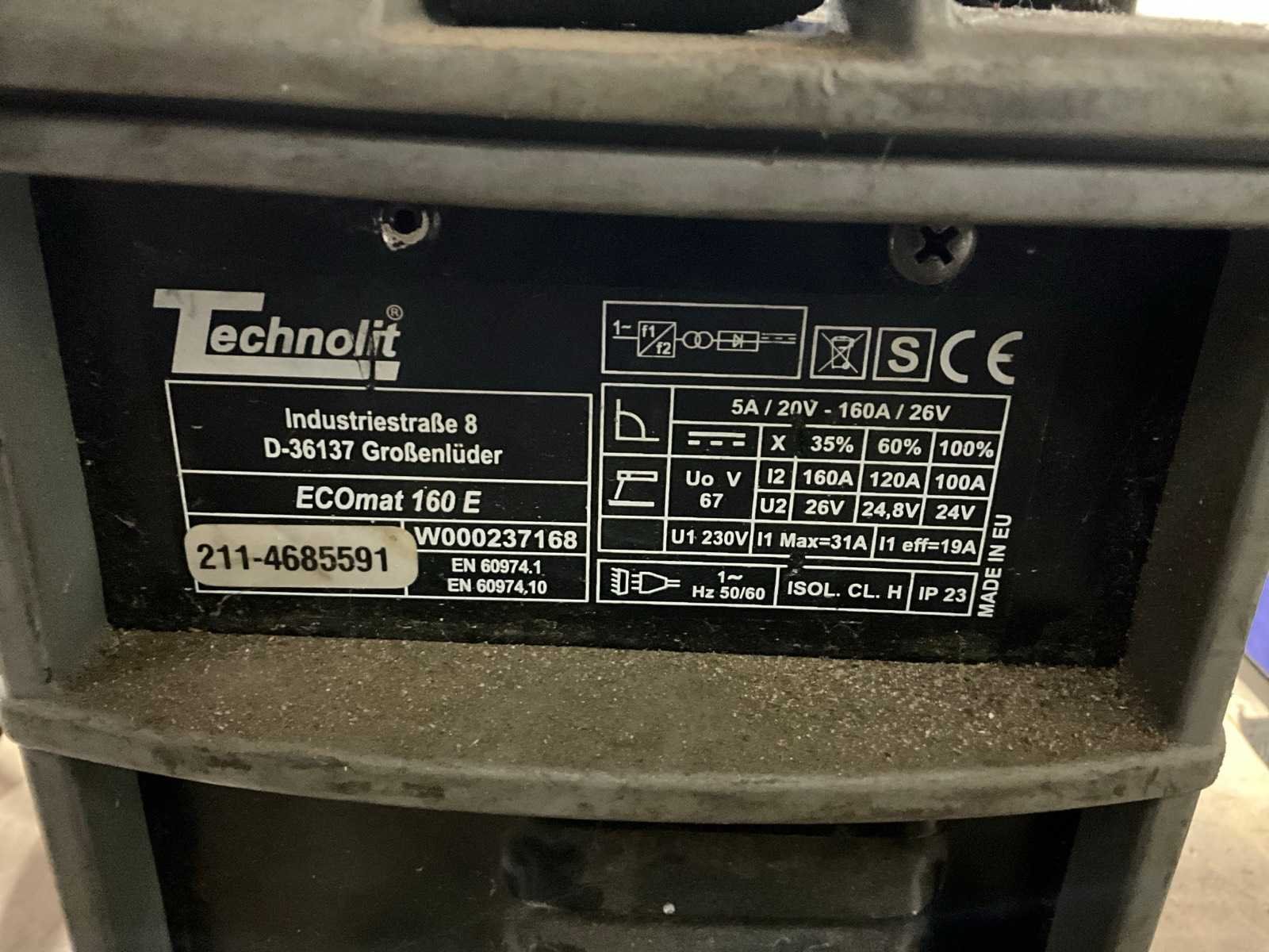 Draagbaar Nee Merk: Technolit Type: Ecomat 160E Inschakelduur: 35% Max. lasvermogen: 160A Aansluiting: 230V