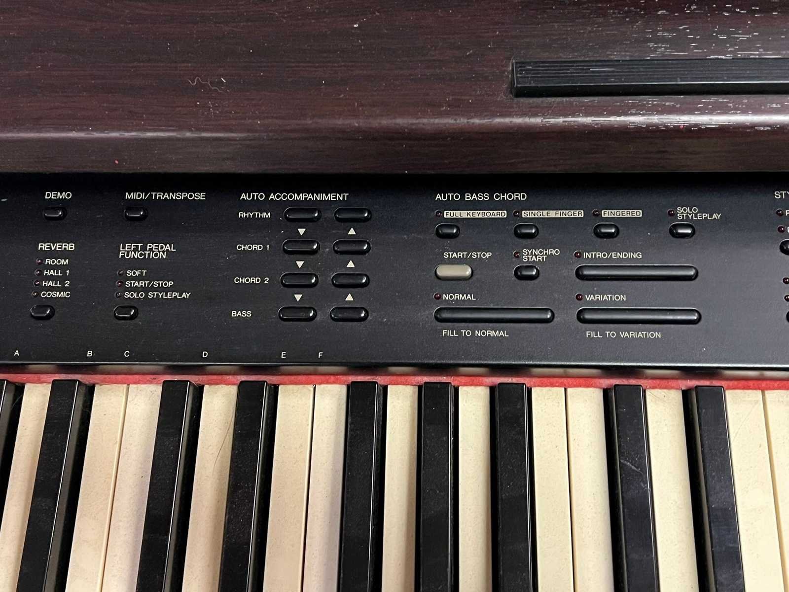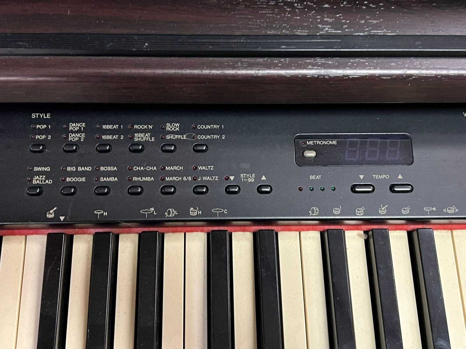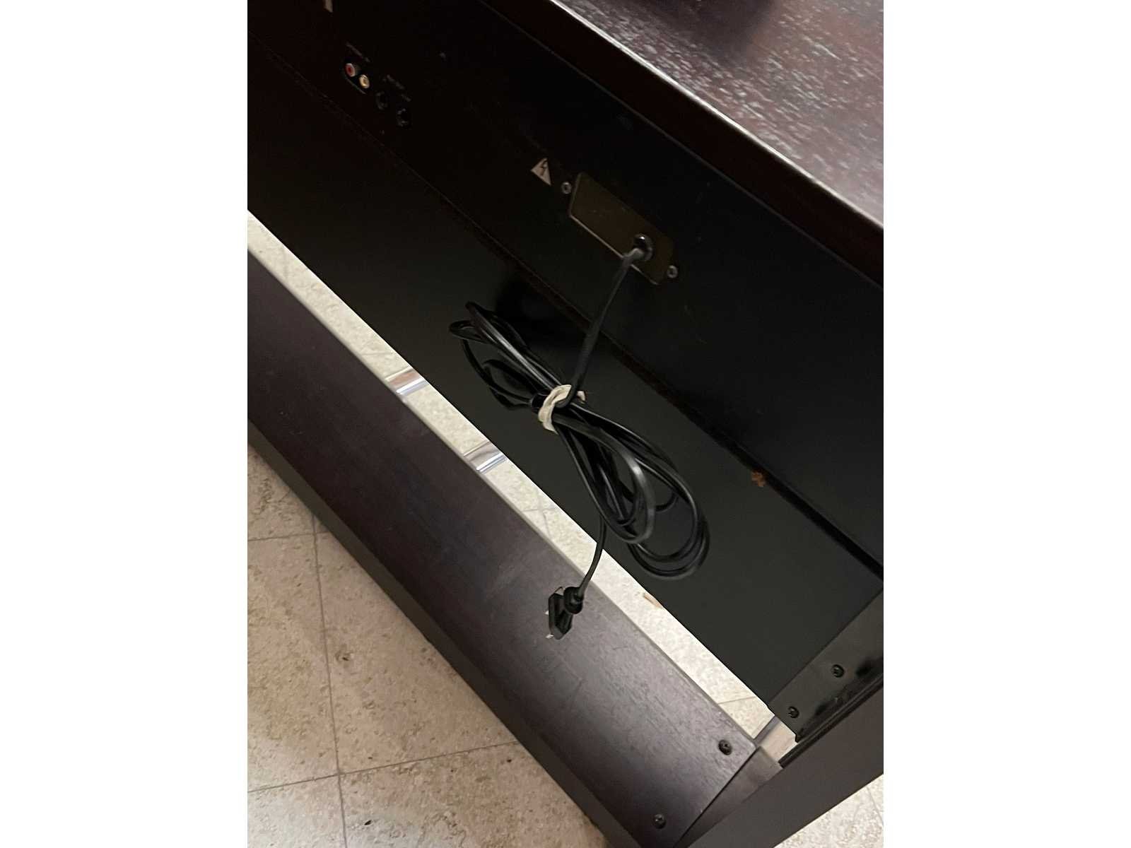 Digitale piano Yamaha PDP-100 met volledig klavier (88 toetsen). Voorzien van vast onderstel, lessenaar en pedalen. Koptelefoonaansluiting aanwezig voor stil oefenen. Geschikt voor beginners, hobbyisten of oefenruimte. Gebruikssporen zichtbaar op behuizing (krassen, slijtage, lichte beschadiging logo – zie foto’s). Stof en ouderdomssporen aanwezig. Nee Merk: Yamaha Model: PDP-100 Product type: Digitale piano / elektrische piano (consolemodel) Aantal toetsen: 88