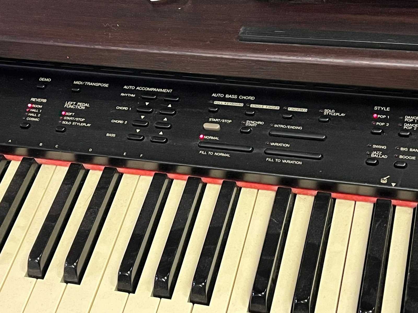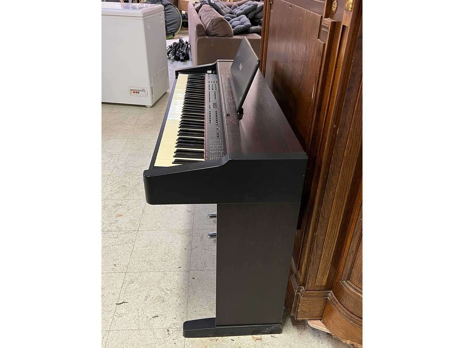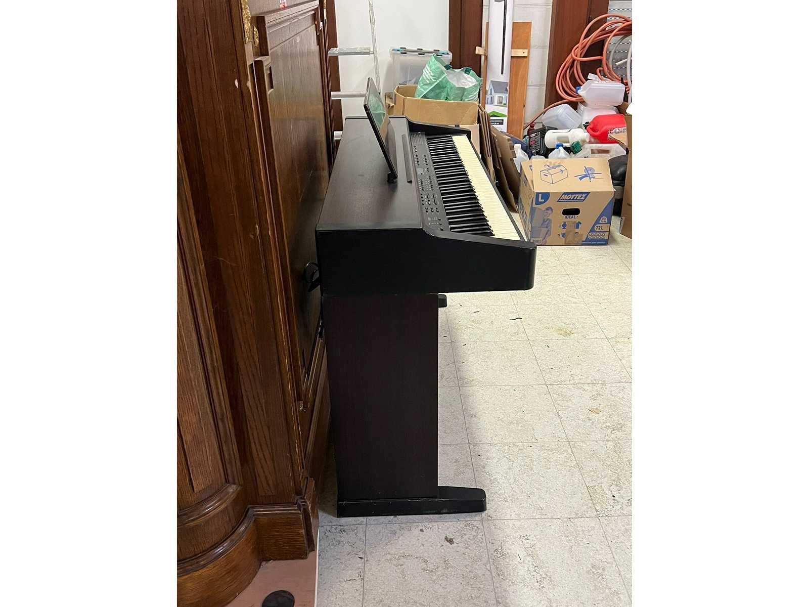 Digitale piano Yamaha PDP-100 met volledig klavier (88 toetsen). Voorzien van vast onderstel, lessenaar en pedalen. Koptelefoonaansluiting aanwezig voor stil oefenen. Geschikt voor beginners, hobbyisten of oefenruimte. Gebruikssporen zichtbaar op behuizing (krassen, slijtage, lichte beschadiging logo – zie foto’s). Stof en ouderdomssporen aanwezig. Nee Merk: Yamaha Model: PDP-100 Product type: Digitale piano / elektrische piano (consolemodel) Aantal toetsen: 88
