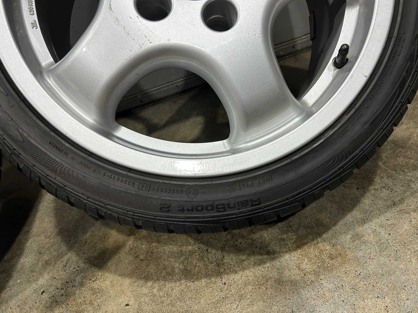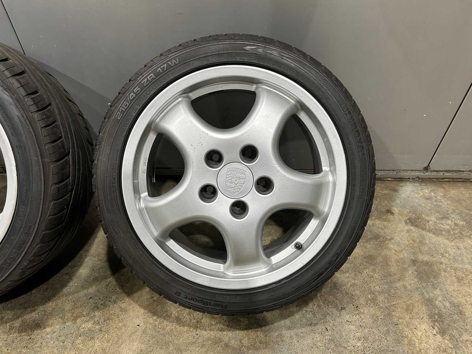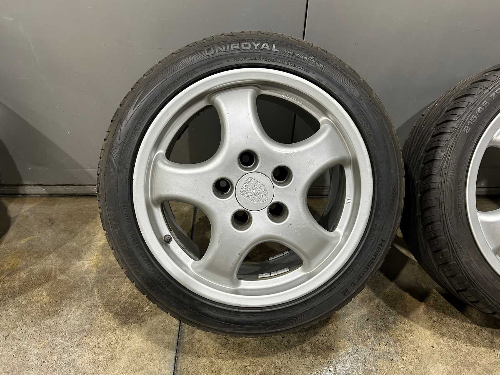 Deze wielen zaten op een Porsche 911 G-model met wide body. Op een 964 met smalle body passen deze niet. Op een Porsche 928 zouden ze ook wel kunnen passen. De wielen zijn te herstellen (als ze perfect moeten zijn) en zijn niet origineel. De center caps komen erbij. De banden zijn oud en te vervangen. Het is een breedset dus V en A verschillen de waarden. No